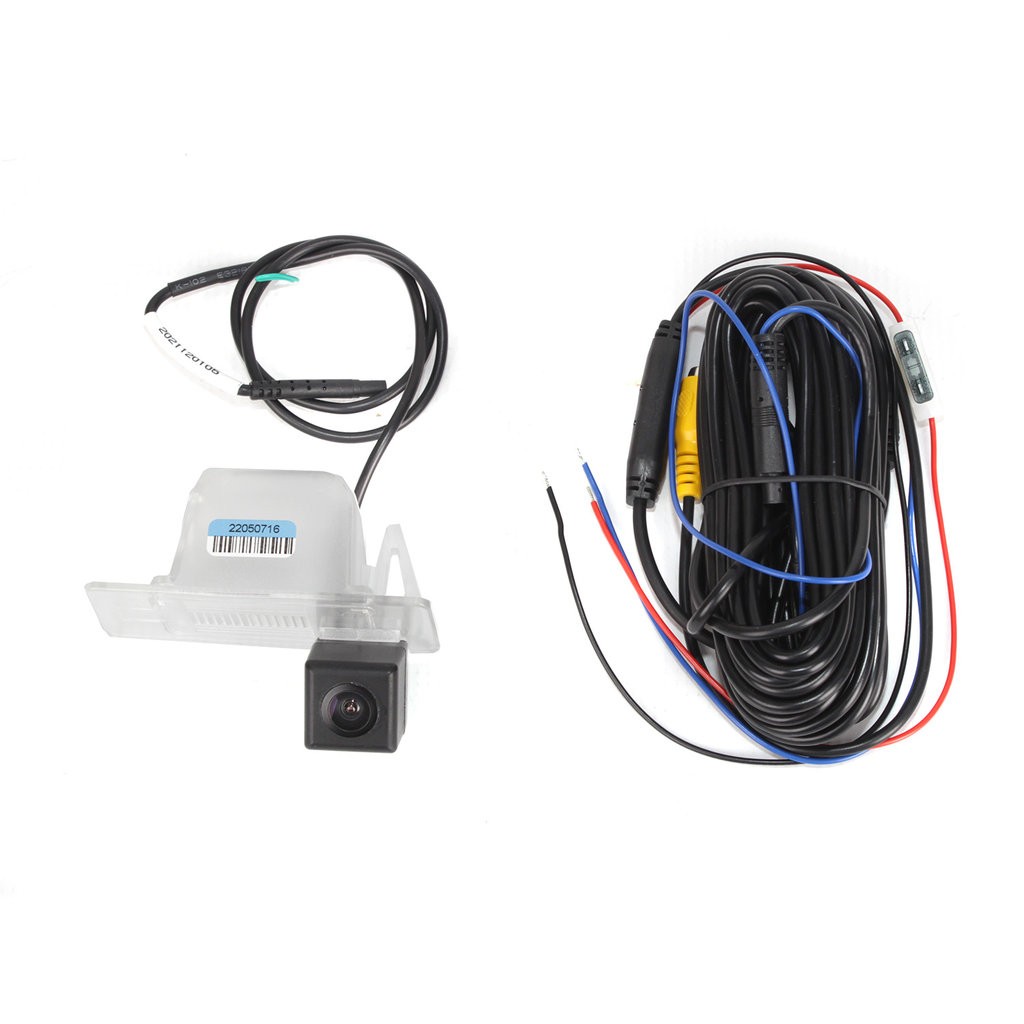 OEM цветна паркинг камера за монтаж на мястото на осветлението за задния регистрационен номер. Част от камерата съдържа място за поставяне на фасунга с крушка от оригиналната лампа за регистрационния номер.