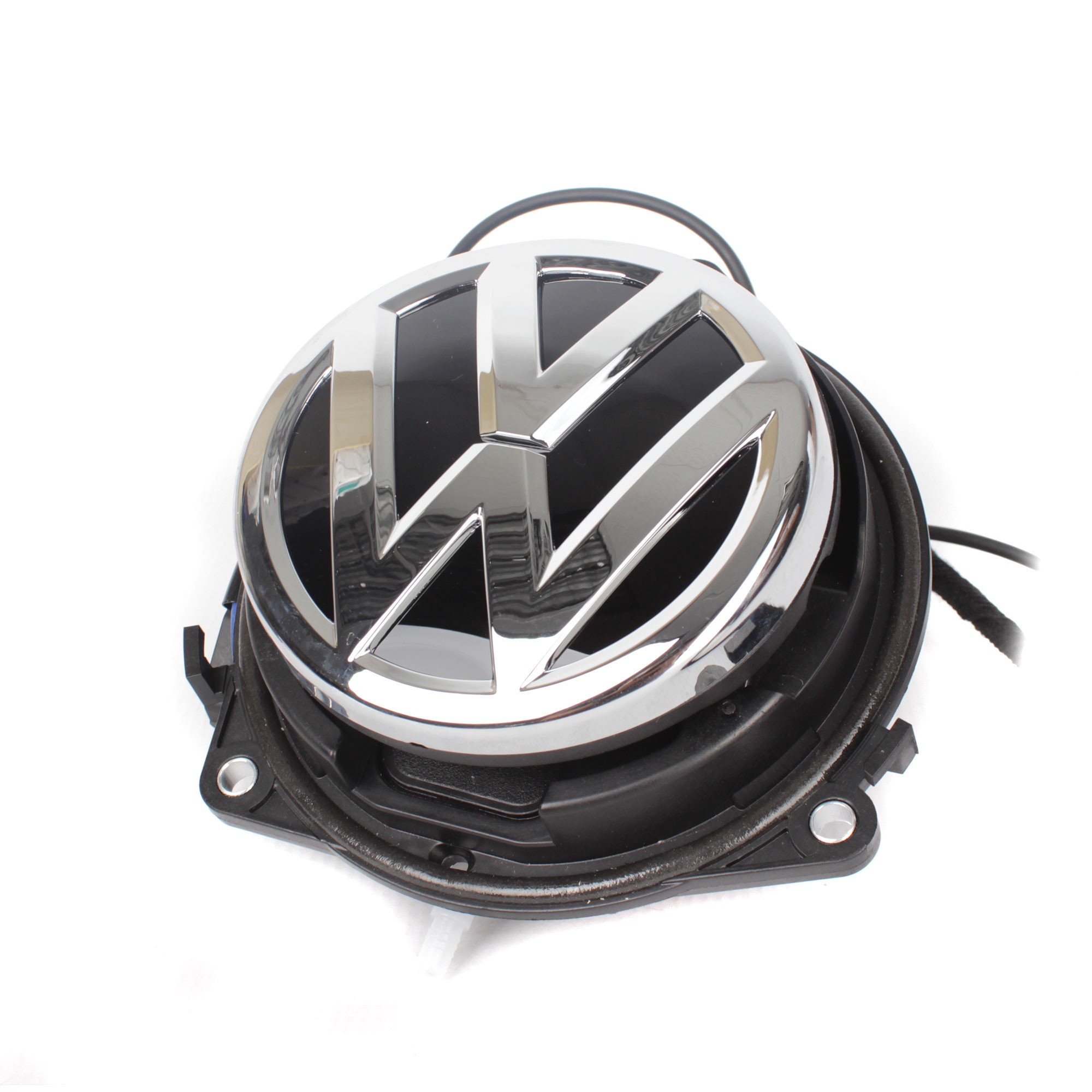 OEM цветна паркинг камера интегрирана в "VW" логото, разположено на петите врати. При включване на задна предавка камерата автоматично се изважда, оригиналната функция за отваряне на вратата чрез логото се запазва.