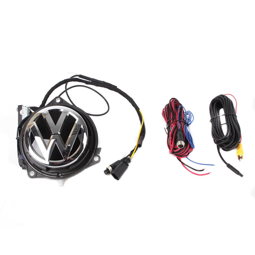 OEM цветна камера за паркиране, интегрирана в логото "VW", поставено на петата врата. При включване на задна предавка камерата автоматично се изважда, оригиналната функция за отваряне на вратата чрез логото е запазена. За автомобили VW Passat B8, Arteon.