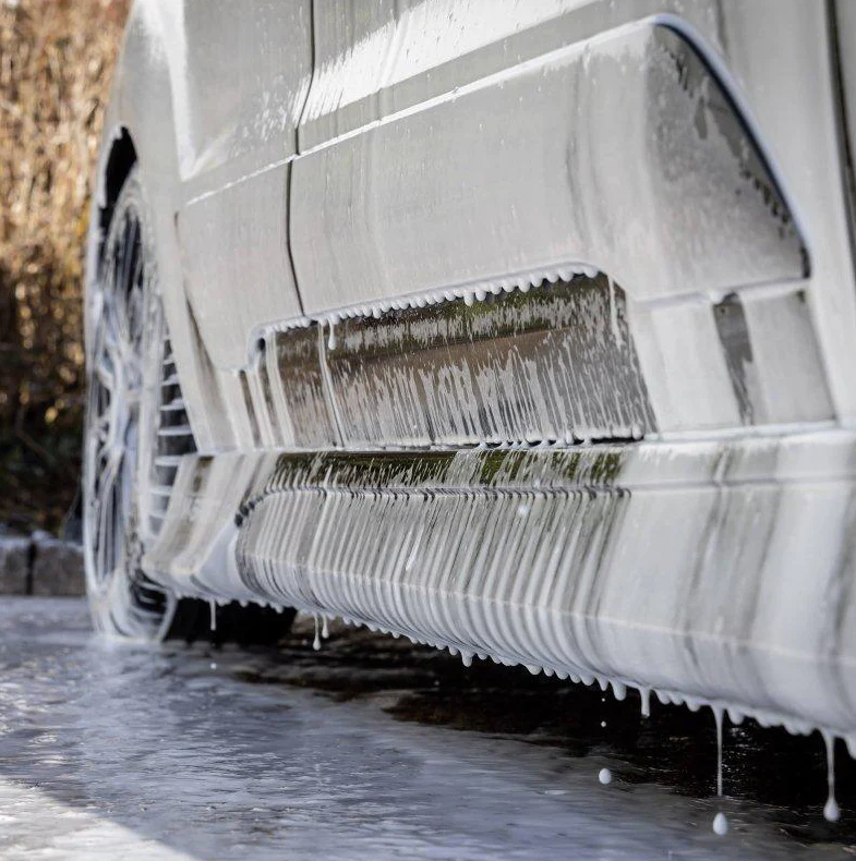 - Първо изплакнете автомобила и отстранете грубите замърсявания с помощта на високонапорна перална машина.