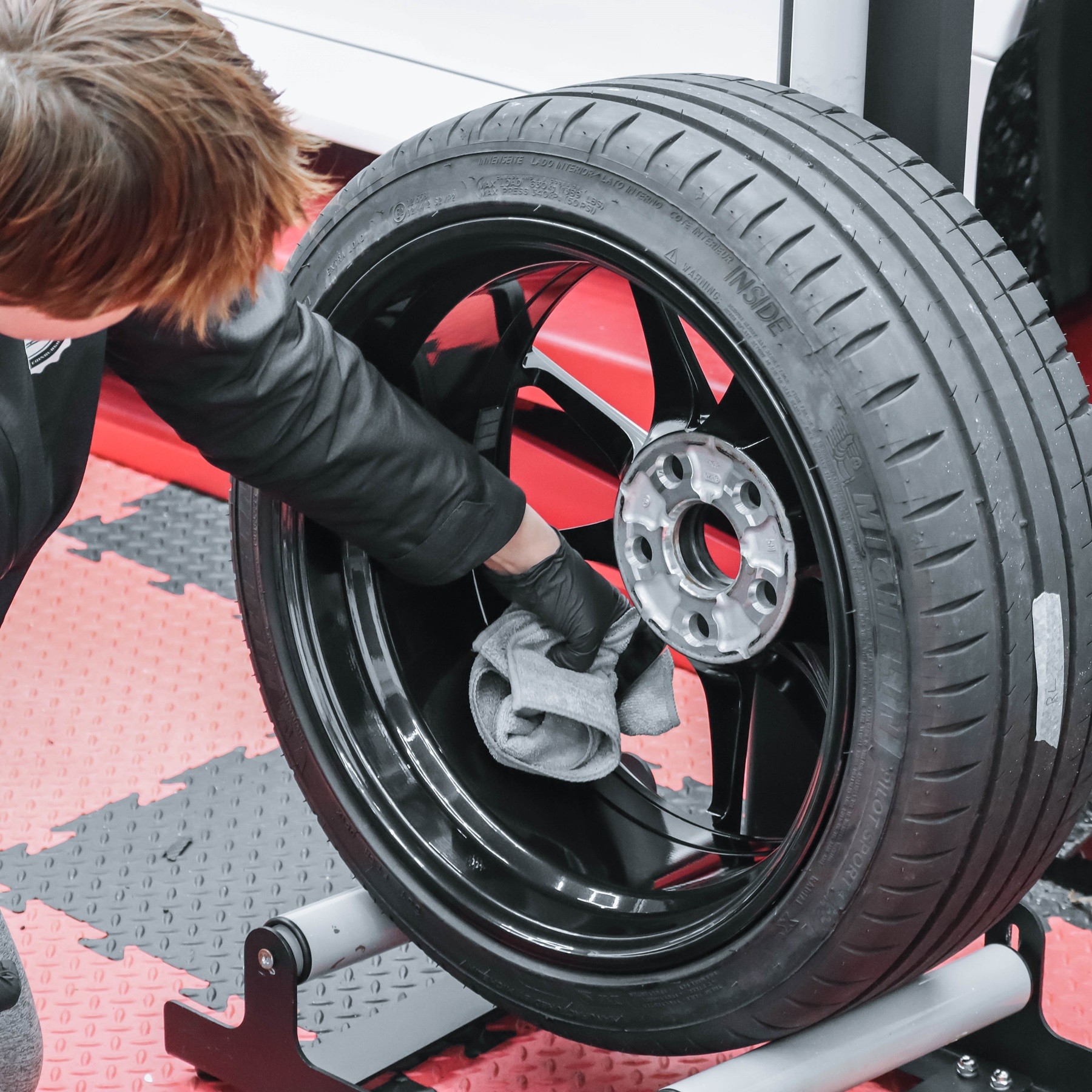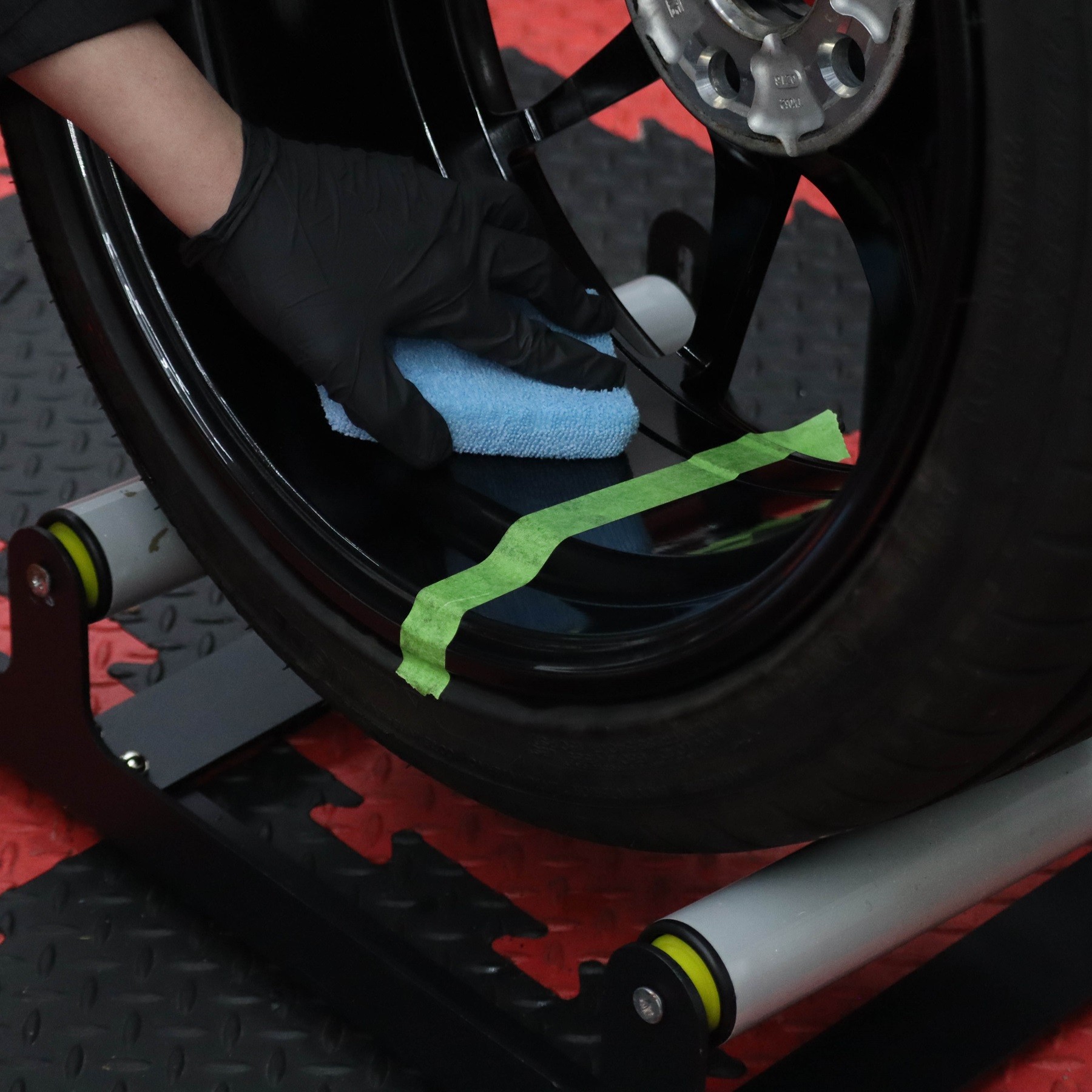 - След това нанесете покритието върху едно цяло колело и разнесете с микрофибърна кърпа.
