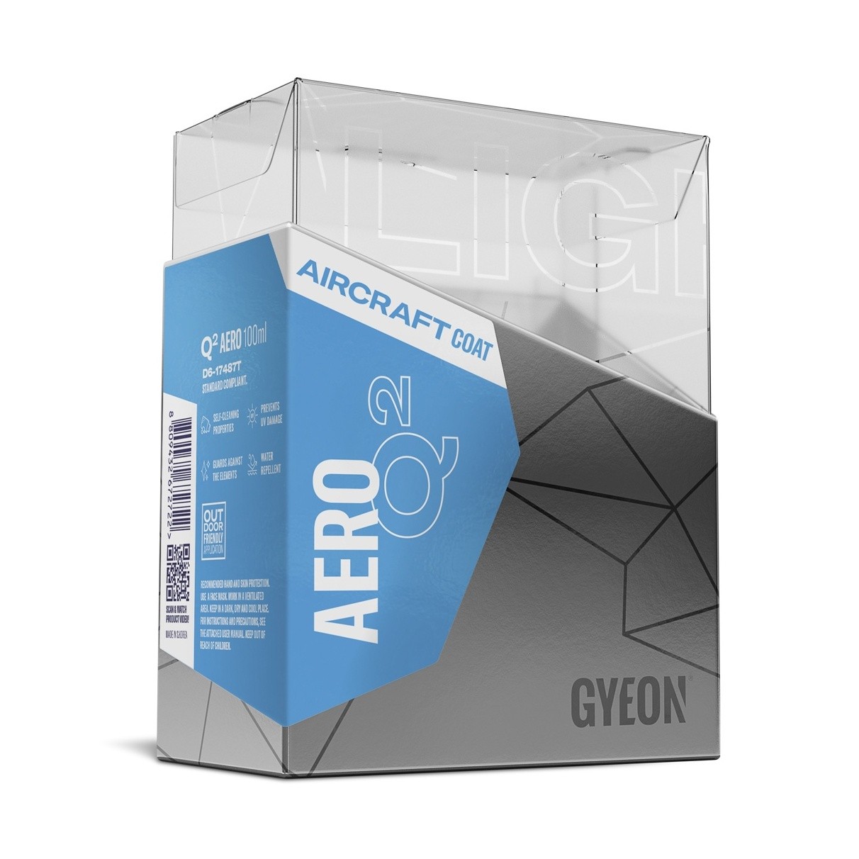 Gyeon Q² Aero е върховото керамично покритие, разработено за въздухоплавателни средства, което се използва в значително по-екстремни условия в сравнение с обикновените превозни средства. Излагането на UV лъчи или големи температурни колебания е в съвсем различен мащаб, затова Gyeon представи своето керамично покритие за въздухоплавателни средства. Това е изключително здраво еднослойно решение, предназначено за самолети, което осигурява високо ниво на защита срещу корозия и промяна на цвета на лака. Q² Aero премина обширен тестов протокол според стандарта Boeing D6-17487T в изпитателно съоръжение в САЩ и отговаря на всички критерии на този стандарт. Това одобрение прави продукта безопасен за употреба на всички летателни апарати и на големи търговски и частни джетове или хеликоптери.