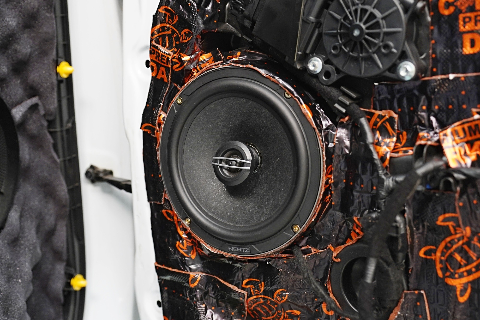 Вид на инсталациятаVýměna reproduktorů a odhlučnění dveří