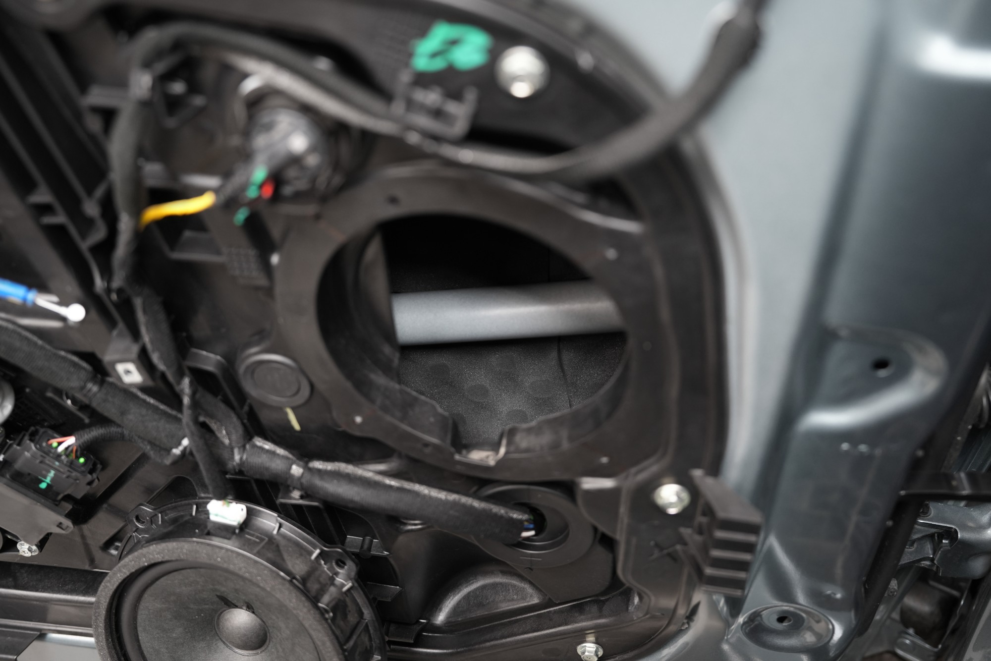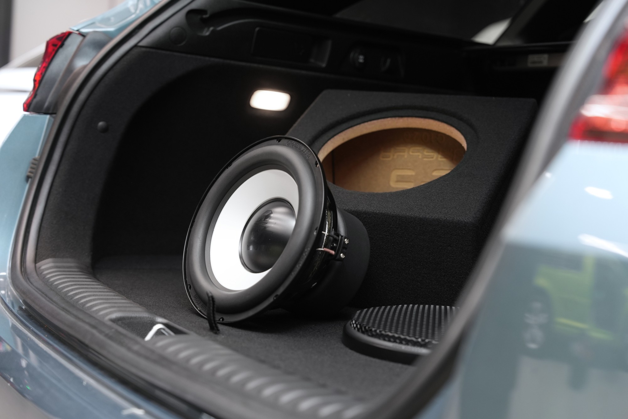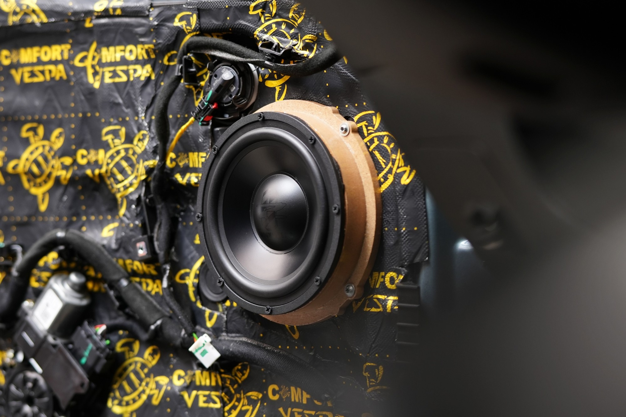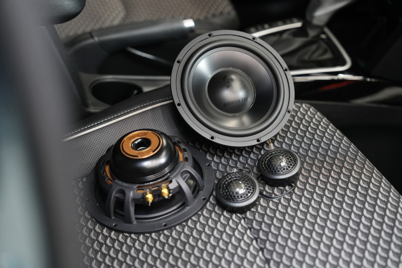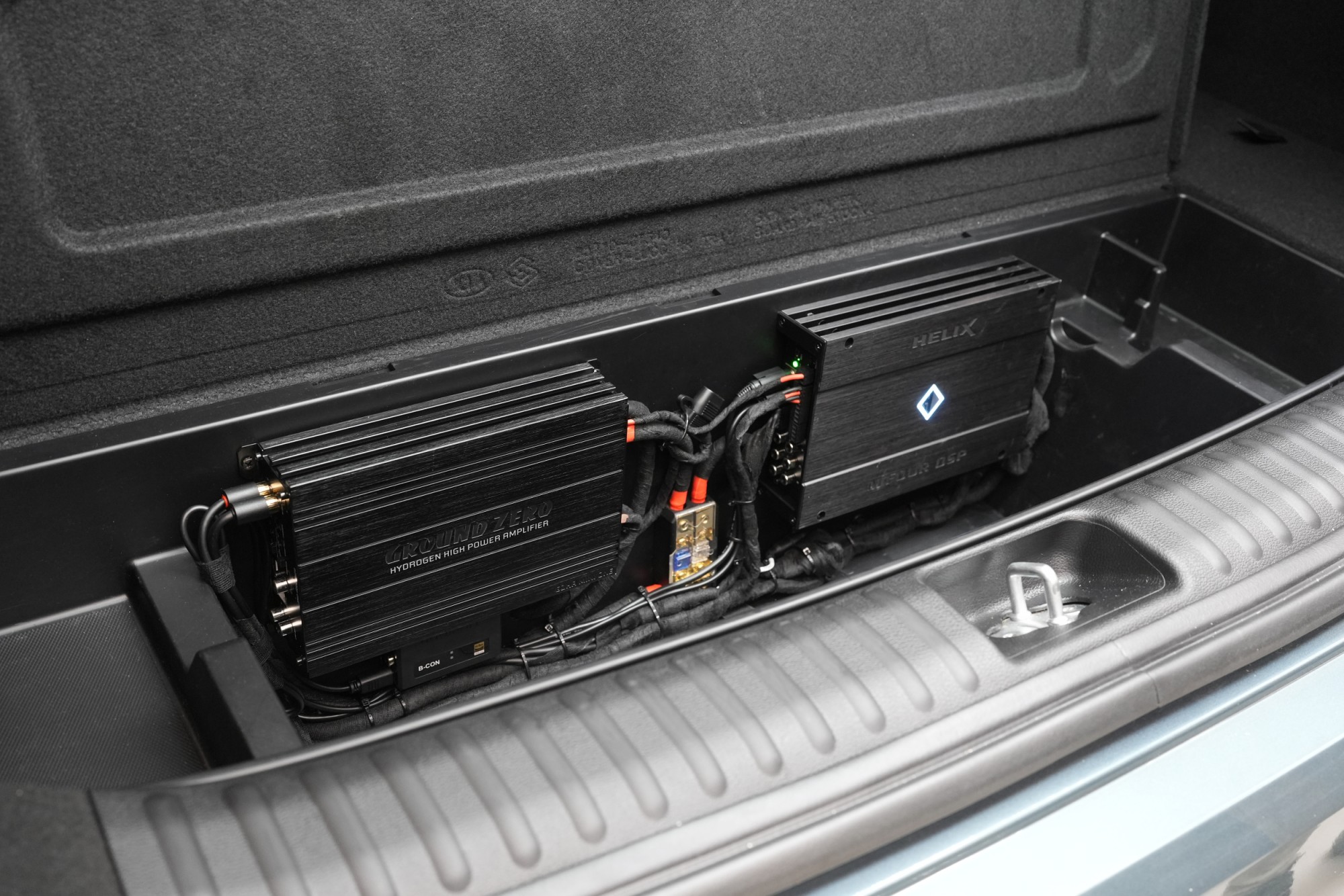 Основата на цялата система е продуктова елита от висок клас на германския производител Ground Zero, който се гордее с наскоро получена награда от престижната организация EISA като най-качествени продукти в техните категории. Конкретно става дума за високоговорители от серията Uranium, чието детайлно звучене, динамика и тонален баланс ги правят идеален избор за нашата система. Ниските честоти са поверени на субуфър от аудиофилската серия Plutonium, който, както и избраните високоговорители, е ориентиран към прецизност и бърза реакция. Захранването на говорителите осигурява усилвателят Helix M Four DSP, чието вградено DSP устройство използвахме за финалното настройки на цялата система. Мощността за субуфъра се доставя от отделен моноблок Ground Zero, като двата усилвателя са скрито поставени в двойното дъно на багажното отделение.