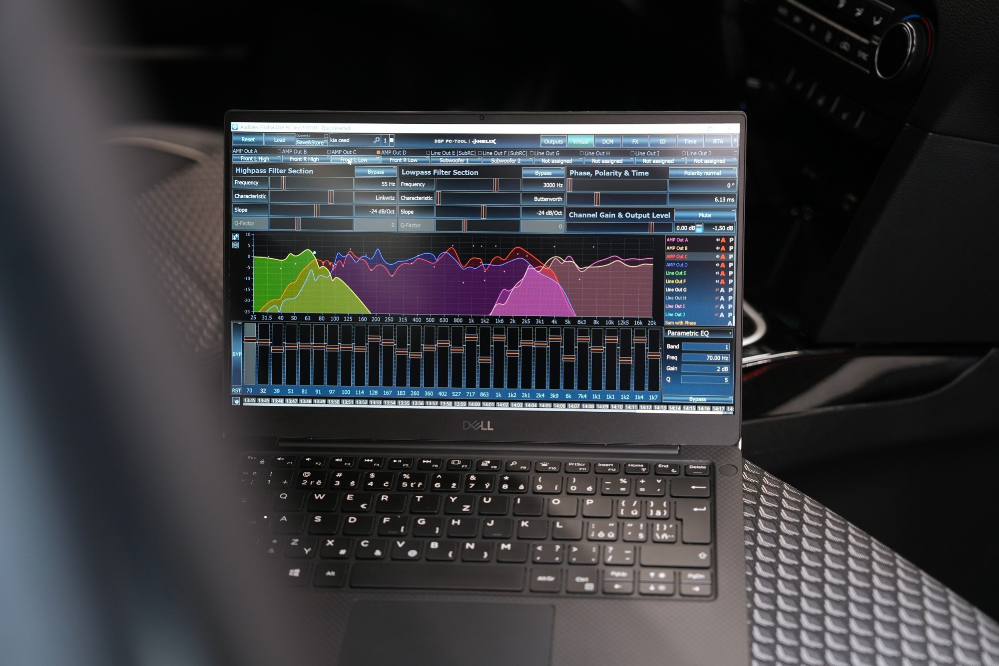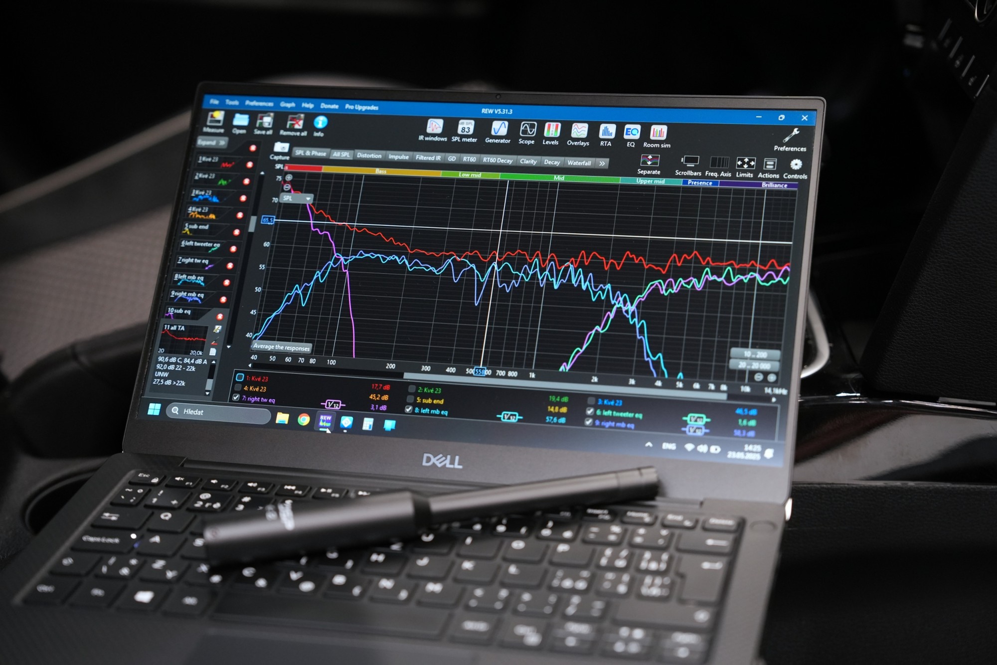 В края на инсталацията системата беше старателно настроена въз основа на измервания на честотния отклик на всички високоговорители и бяха създадени потребителски преcети не само за възпроизвеждане на музикални файлове от главното устройство, но и за Hi-Res модул, позволяващ слушане на записи в студийно качество, например от платформата Tidal и други. Полученият звук отговаря на високите изисквания на нашия клиент и в същото време е перфектно пригоден за конкретния автомобил.Показване на продуктиСкриване на продукти