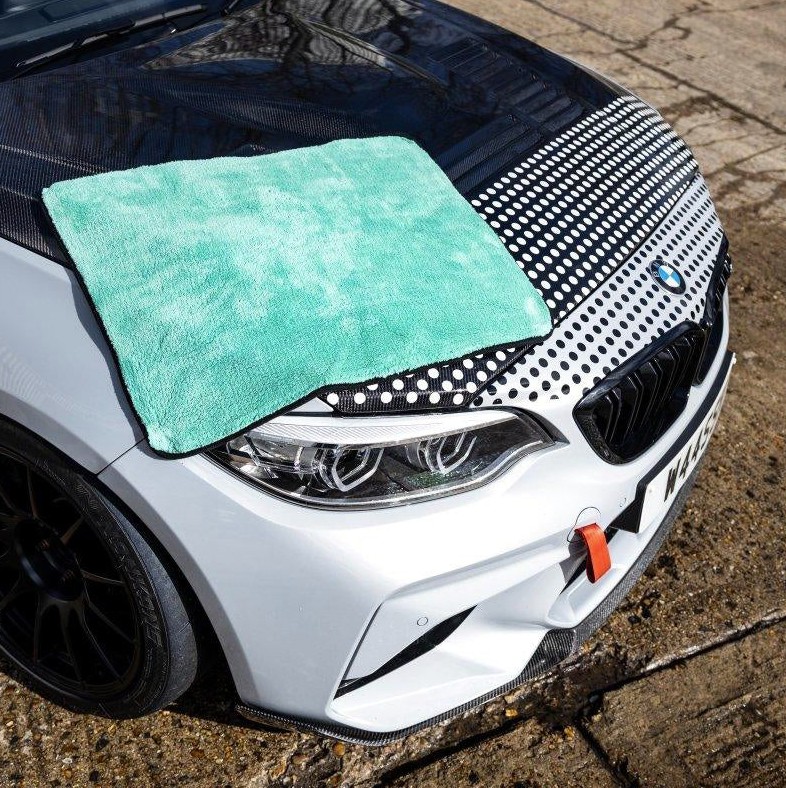 Премиум кърпа за сушене с ултра-дълги влакна и грамаж 1200 g/m². С тази кърпа ще подсушите автомобила изключително лесно и бързо. Благодарение на високия грамаж абсорбира необичайно голямо количество вода (до 3,5 l). Съставът ѝ улеснява сушенето и е нежен към боята. Размерът 50 x 70 cm е напълно подходящ за универсална употреба. Не е нужно да се притеснявате, че ще докоснете земята при сушене на долните части на автомобила.