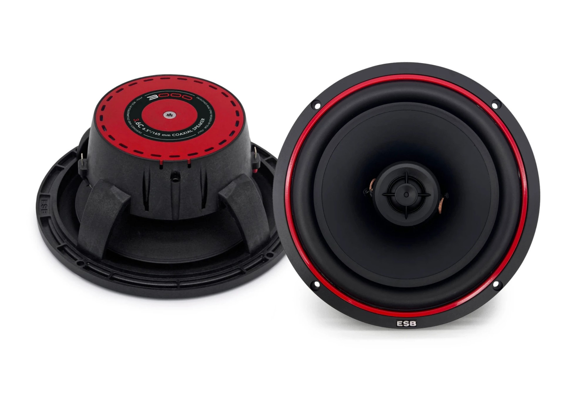 Коаксиалните говорители от серия 3000 споделят няколко общи и ексклузивни технологии. ABS кошът, подсилен със стъклени влакна, е проектиран да осигури максимална торсионна твърдост, като същевременно предлага минимално съпротивление на въздуха, изтласкван от диафрагмата през задната страна. Кошът играе решаваща роля при центрирането на бобината в магнитния кръг и неговата твърдост е от ключово значение. Не по-малко важен е и демпфингът. Класическите стоманени кошове обикновено имат склонност да резонират, което значително променя крайния звуков резултат на говорителя. ABS кошът позволява по-добър въртящ момент на затягане, отколкото типичните пресовани стоманени рамки, и гарантира, че гласовата бобина остава добре центрирана в магнитното поле. Хартиената диафрагма все още представлява най-доброто съотношение между лекота, твърдост и способността на диафрагмата да заглушава нежелани вибрации и изкривявания. Специалната водоустойчива обработка, разработена от ESB, не променя външния вид и параметрите на говорителя, за разлика от традиционните бляскави полимери, които добавят значително количество маса към самата диафрагма и силно променят звуковия резултат. Пербунан гуменият окачващ пръстен осигурява двойна функция на високо демпфиране и отлична напречна стабилност. Това означава, че диафрагмата е "принудена" да се движи само вертикално, като се елиминират напречните движения, които биха могли да доведат до контакт с бобината и магнита. Гласовата бобина на ууферите използва алуминиева рамка и навивка чрез двуслойна технология на меден проводник с алуминиево ядро. Конструкцията с дълъг ход е избрана за подобряване на чувствителността и ефективността при минимални изкривявания. Говорителите са оборудвани със задвижващ механизъм с феритов магнит клас Y-35, с ясно по-висока производителност от класическите "стандартни" феритови магнити, което осигурява по-лесно управление на подаваната мощност и отлична ефективност. В комплекта са включени и интегрирани високочестотни говорители с диаметър 25 мм с копринена куполна мембрана, която гарантира вярно и прецизно възпроизвеждане на високите честоти. Висококачествените неодимови магнити N-35 са оптимизирани чрез компютърни симулации за постигане на по-добра ефективност и подобряване на линеарността с цел осигуряване на по-голям и по-добър контрол на подаваната мощност и увеличаване на честотната лента и ефективността. Резултатът са коаксиални говорители с надстандартно звучене, които са отличен допълнителен избор към компонентите от тази моделна серия.