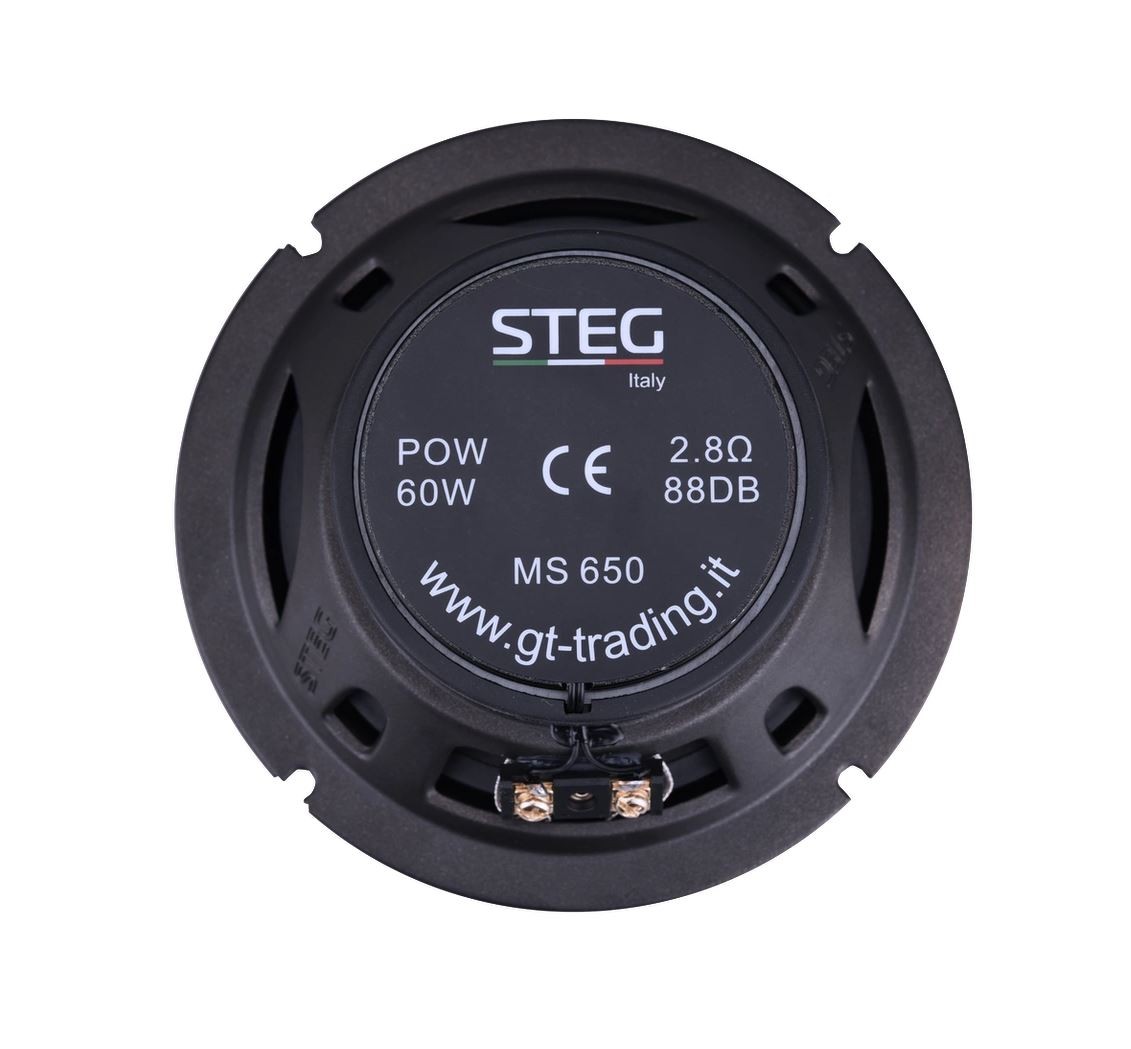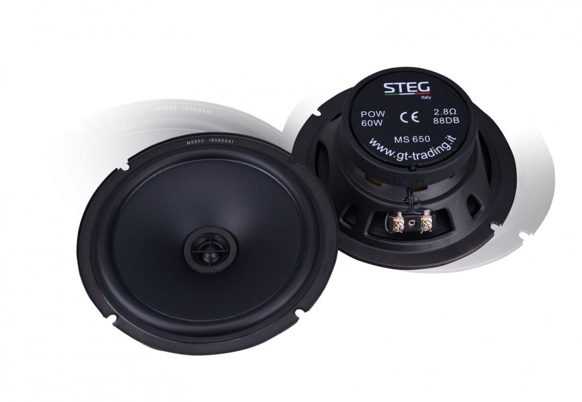 В Италия ръчно изработени коаксиални говорители с висока ефективност и мощност. Високочестотният говорител е поставен в идеална позиция и почти не ограничава повърхността на средночестотния говорител, което позволява достигане на звук, подобен на класическа 2-посочна система.