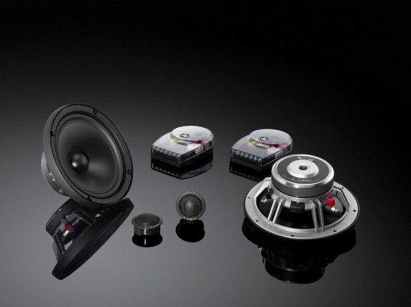 | Тип на високоговорителитеКоаксиални високоговорители: Коаксиалните високоговорители се характеризират с конструкция, наречена всичко в едно. Високочестотният и среднобасовият говорител са в един и същ кош. Предимството е по-лесен монтаж, но поради свързването или близостта на честотните диапазони в един говорител обикновено се понижава качеството на звука. Обикновено в центъра на среднобасовия говорител се намира високочестотният говорител, чиито звукова бобина работи във втората въздушна междина на общия магнитен кръг. Коаксиален говорител с три честотни диапазона се състои от среднобасов говорител, отпред на специален носач е поставен средночестотният говорител и отделен високочестотен. Компонентни високоговорители: Компонентните високоговорители се отличават с разделянето на отделни честотни диапазони: високочестотен + среднобасов + евентуално басов диапазон. Отделните говорители могат да бъдат разположени напълно отделно, което води до по-добро звуково и акустично представяне. В огромното мнозинство от случаите при компонентните високоговорители се доставя и външна кросоувърна мрежа, която разделя високите, средните/среднобасовите и при системи с три честотни диапазона и басовите честоти, както и позволява настройване на нивото в децибели на високочестотния говорител (напр. +2 dB, 0 dB, -2 dB), стръмността (напр. 6 dB/октава, 12 dB/октава) или активно/bi-amp свързване. | компонентни 2-лентови |