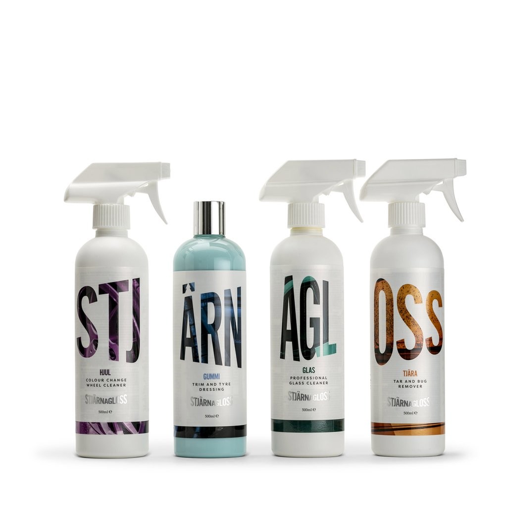 Комплект автокозметика за почистване на екстериора Stjärnagloss More Four Kit 4 x 500 ml съдържа: