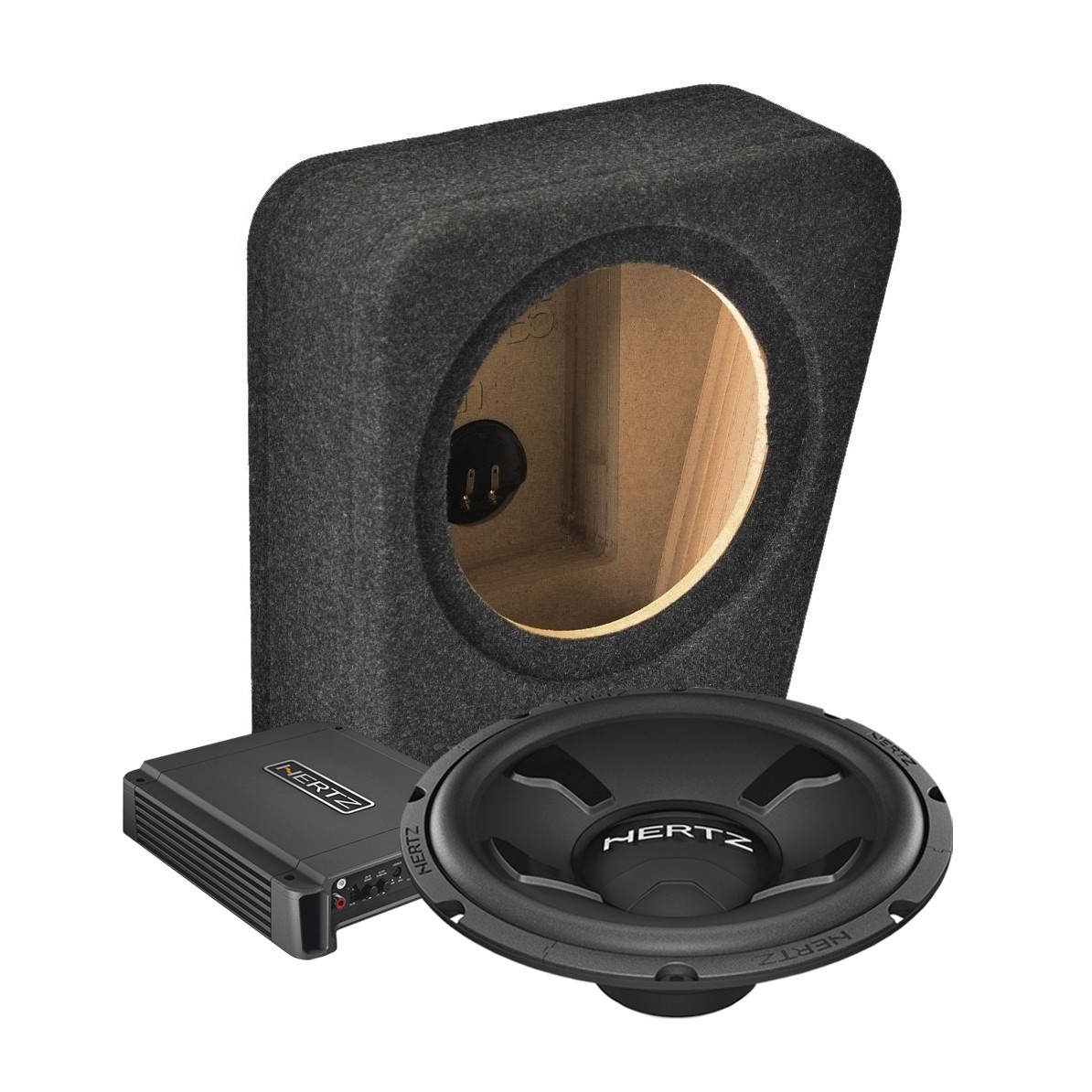 Комплект субуфер в OEM кутия и усилвател за автомобила Volkswagen Passat B5 / B5,5 съдържа:- 10" субуфер Hertz DS 25.3