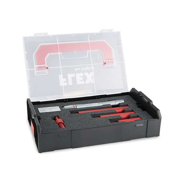 За разширяване на използването на ротационни полиращи машини при обработка на тесни и труднодостъпни места, като външни огледала, спойлери, брони и други. Състои се от три удължения M14 от елоксиран алуминий - 50 мм, 80 мм, 120 мм и адаптер M14 за акумулаторни отвертки. Вал Ø 19 мм, размер на ключ SW 17, фланец макс. Ø 75 мм, носач макс. Ø 80 мм. Опаковано в практичен мини L-Boxxu с вложка и отделено място за LED фенер Swirl Finder SF 150 P (не е включен в комплекта!).