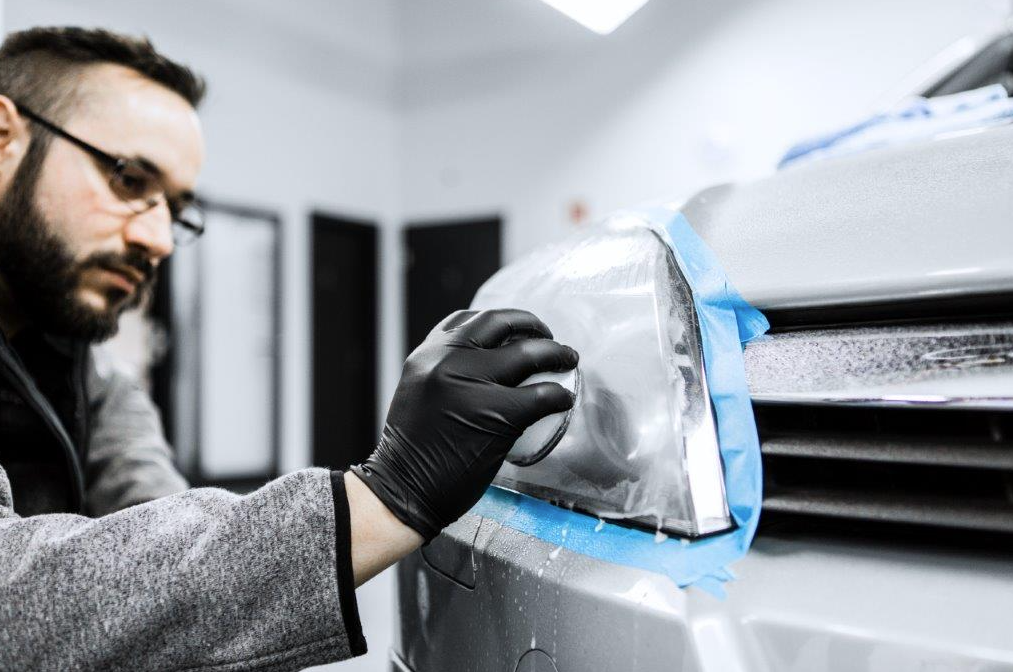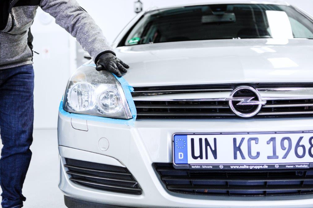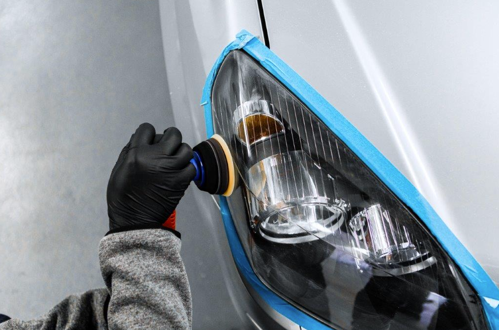 - Преди самото полиранe на фаровете облепете краищата на фаровете с маскираща лента.