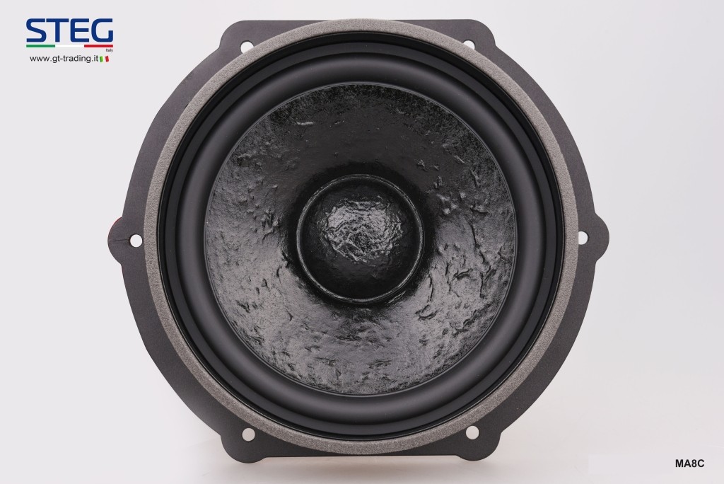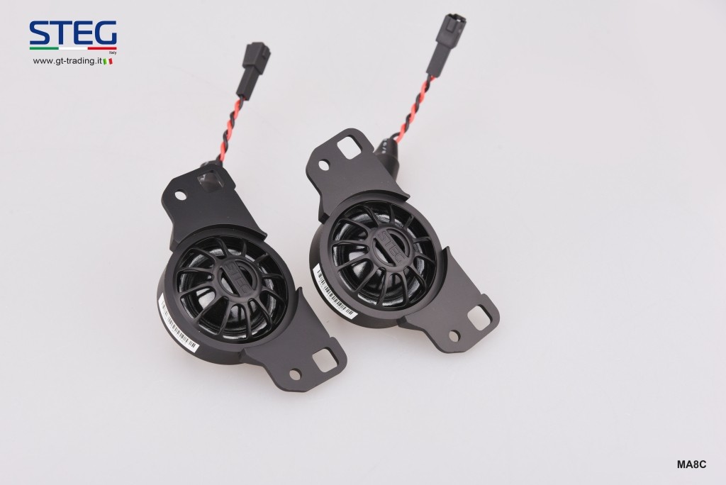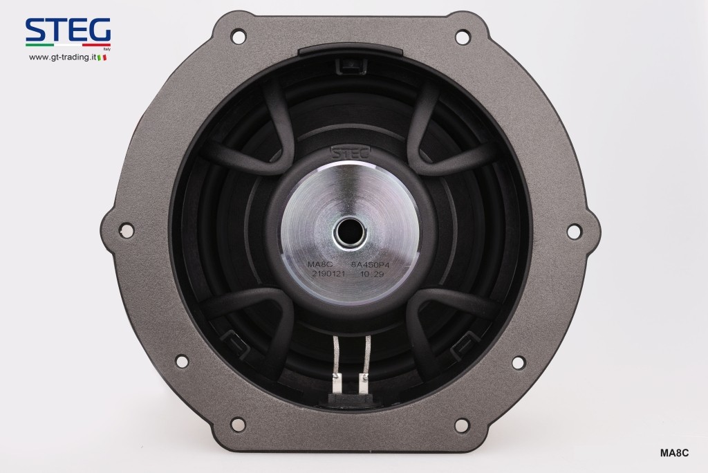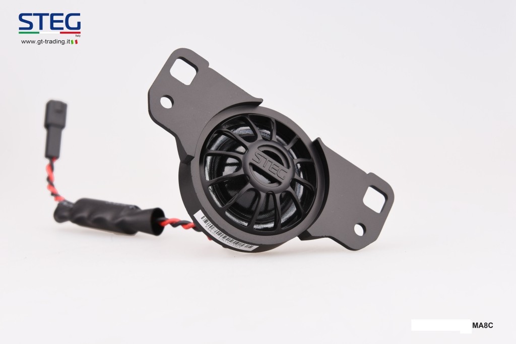 Новите комплекти за ъпгрейд на марката STEG са резултат от години развитие, тестове и подбор на най-добрите материали. Резултатът е уникат без конкуренция. Новият комплект за Audi е съвършено проявление на звука и безкомпромисния дизайн — просто премахнете оригиналните високоговорители и ги заменете с новите. Не е необходимо да променяте нищо в колата, да режете или да приспособявате. Нито да свързвате усилватели по сложен начин към оригиналната система или да нарушавате електрониката. Целите комплекти високоговорители са точно пригодени за смяна на оригиналните високоговорители, по система plug and play. По-лесно не може! Високоговорителите са по-чувствителни, имат по-голяма мощност и благодарение на качествените материали предлагат напълно различно звуково представяне. Затова има огромна разлика вече при свързване към оригиналната система. Целта на италианските разработчици беше да ви донесат усещането за жив концерт във Вашия автомобил, и с тези високоговорители това е постигнато на 100 %.