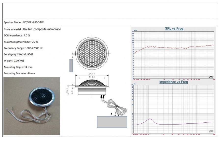 - Чувствителност 88 dB за средночестотен говорител / 90 dB за високочестотен говорител.