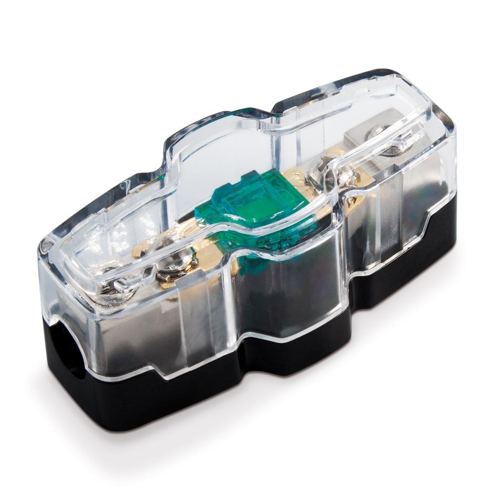 Корпус за Mini-ANL предпазители с вход и изход за кабел до 25 mm². Повърхностите на предпазителите и кабелите са защитени с здрав пластмасов капак. Два отвора за закрепване на държача за предпазители са разположени в долната част на капака. Размерите на корпуса са 75 x 35 x 30 mm.За марката