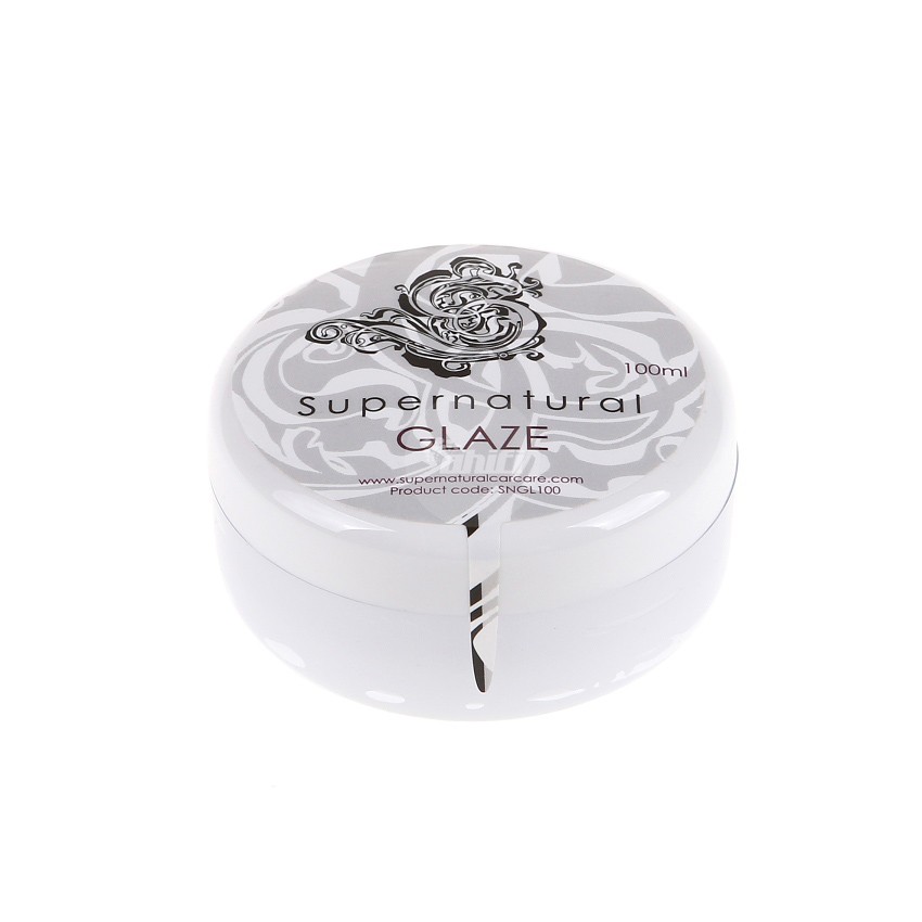 Supernatural Glaze е отличен детайлинг крем за гуми, пластмаси, каучук и дори за кожа от серията Supernatural. Предпазва от UV лъчение, отблъсква замърсявания, масла и вода и най-вече оставя повърхността сатенено черна. След нанасяне гумите и пластмасите са сухи и по тях не се залепват замърсявания и прах. Supernatural Glaze издържа 2 до 3 седмици на гумите и до два месеца на пластмасите.