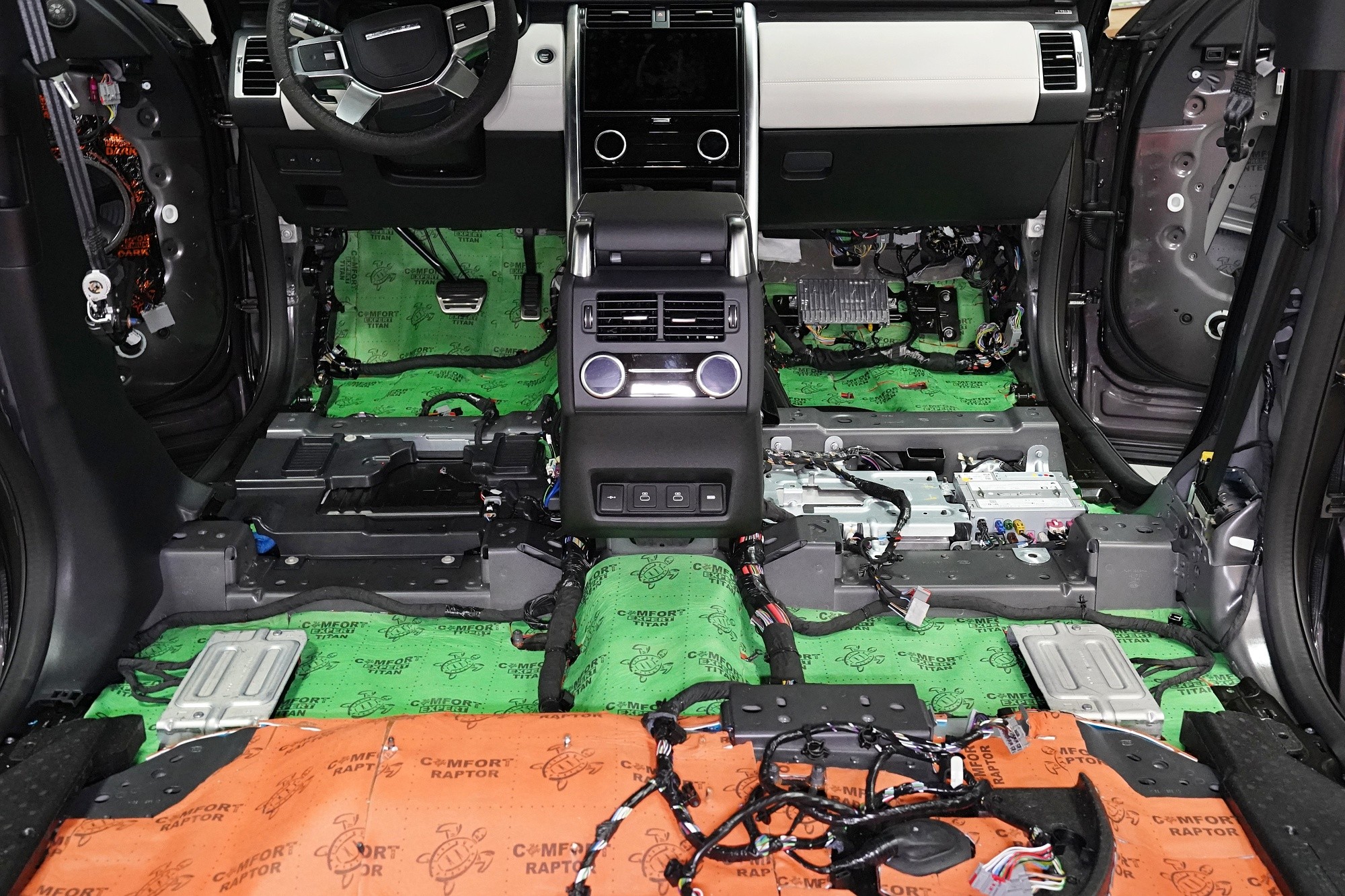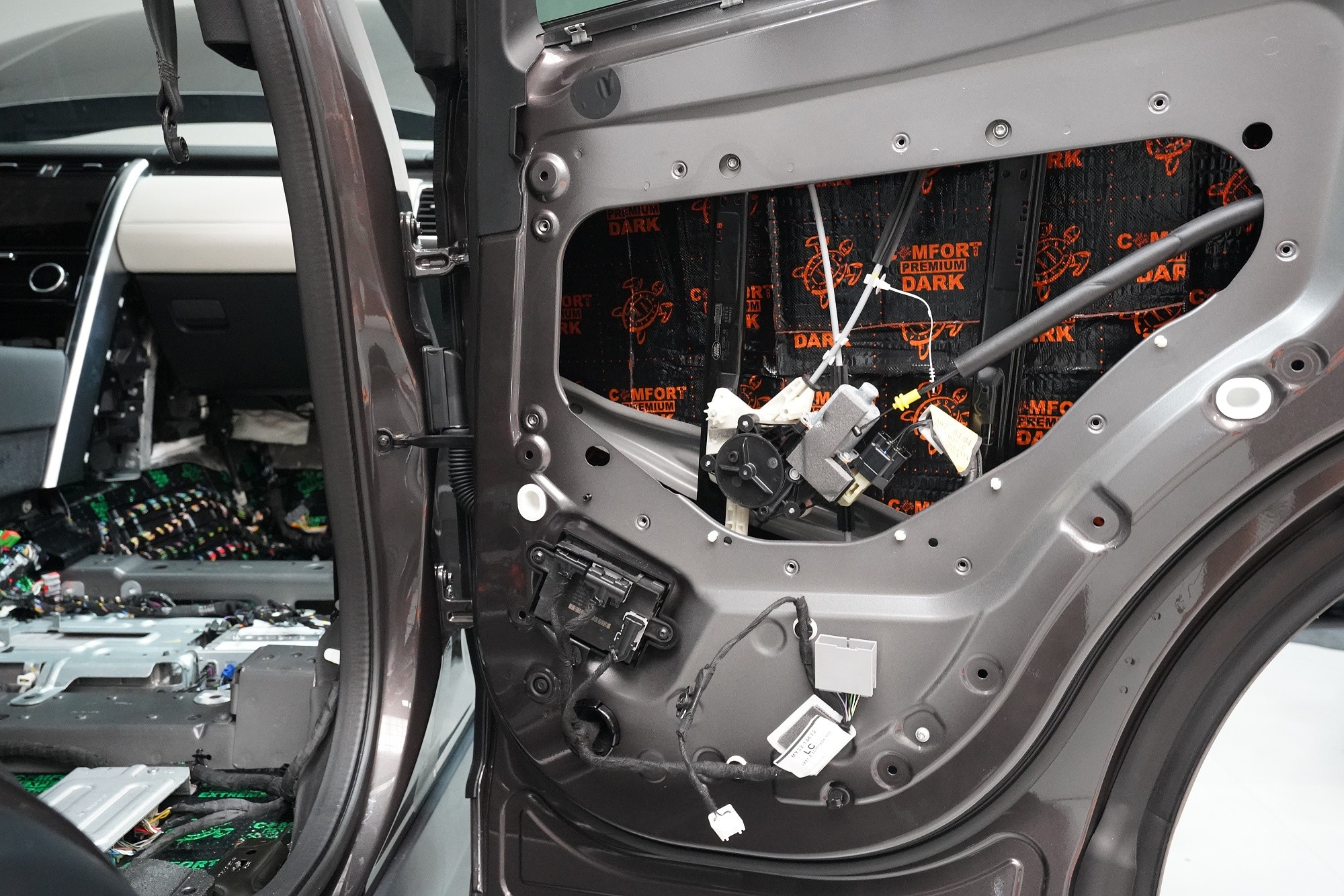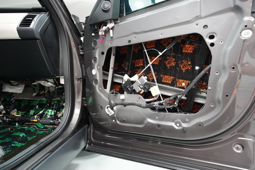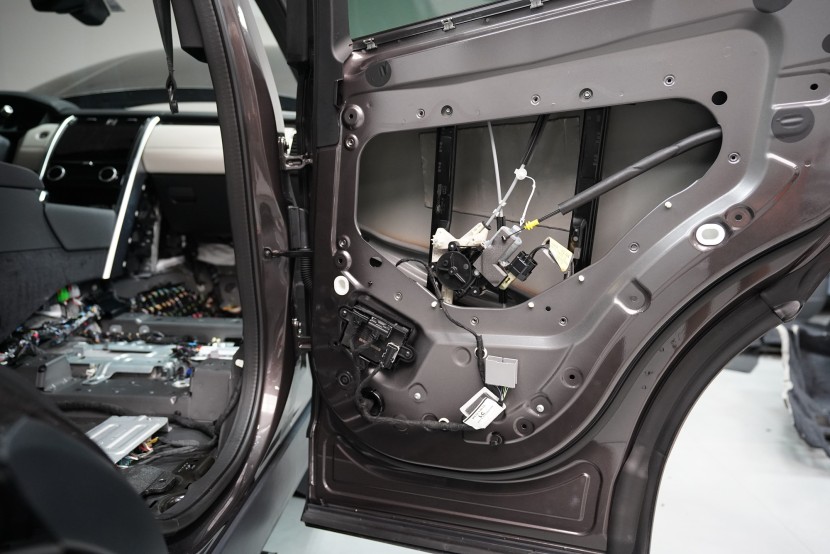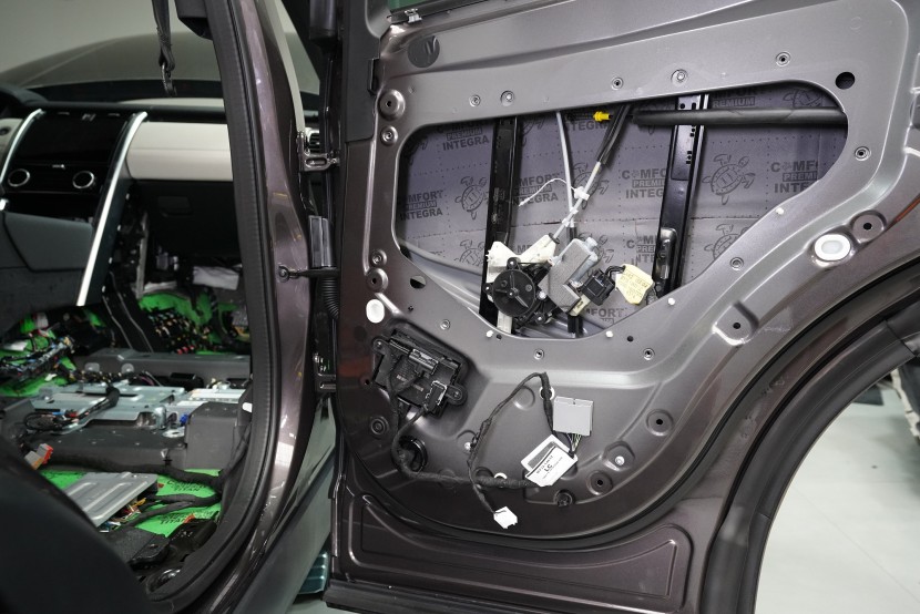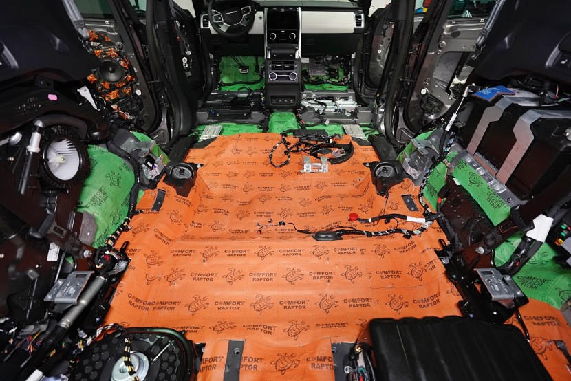 Отутиха на автомобила Land Rover Discovery. При премиум автомобилите често се срещаме с разочаровани собственици, които очакваха достатъчна фабрична звукова изолация. Реалността обаче е различна и въпреки високия комфорт и техническите удобства, Land Rover Discovery страда от значителен шум от гумите, окачването, двигателя или аеродинамичния шум. Производителят на автомобила не е осигурил почти никаква защита срещу вибрации, а звуковата изолация присъства само в рамките на тапицерията на пода. И това много недостатъчно състояние с радост ще отстраним. Тъй като автомобилът е напълно нов и в гаранция, собственикът се обърна към нас и поради нашия опит и качествено свършена работа, която не предизвиква възражения от оторизирания сервиз. Автомобилът на клиента така остава в гаранция и ще бъде значително по-тих, защитен от топлинни загуби и по-удобен като цяло. С взискателния собственик на този автомобил се договорихме за нашия пакет шумоизолация Premium Plus, в който използваме професионални материали от най-високата серия Comfortmat Expert. Насочихме се към всички ключови зони на автомобила, а именно предните, задните и петите врати, пода, багажното отделение, предните и задните арки от вътрешната страна и капака. Резултатът е поне двукратно намаляване на шума в купето, което при магистрална скорост може да надхвърли 4 dB. За инсталацията работеха едновременно четирима наши опитни техници, които успяват да изпълнят и такава взискателна монтажна работа в рамките на един работен ден.