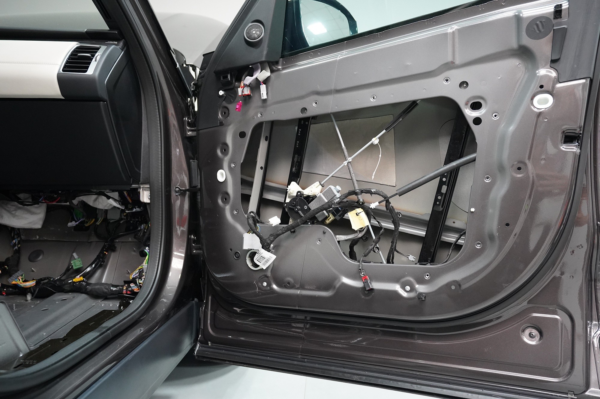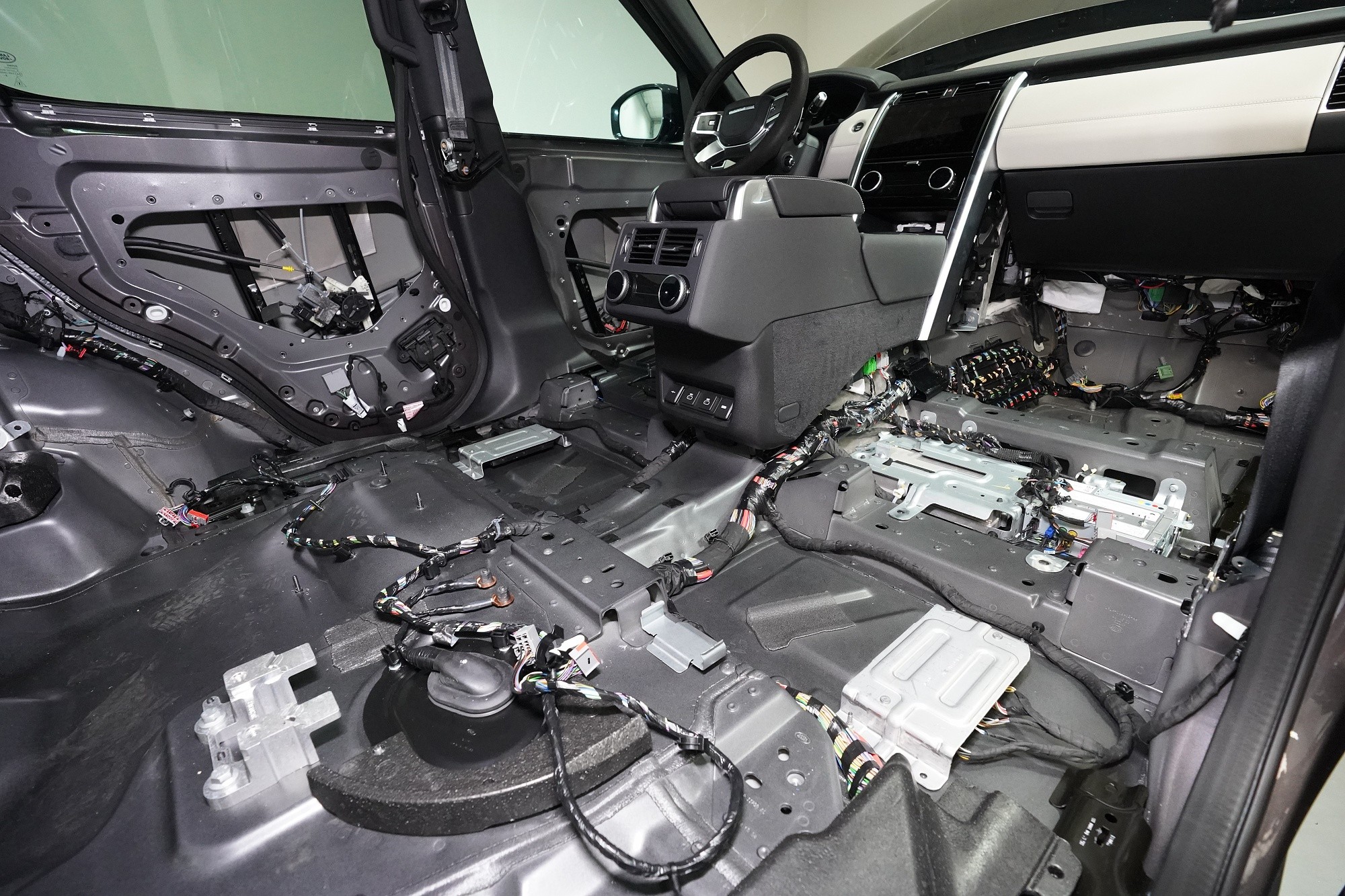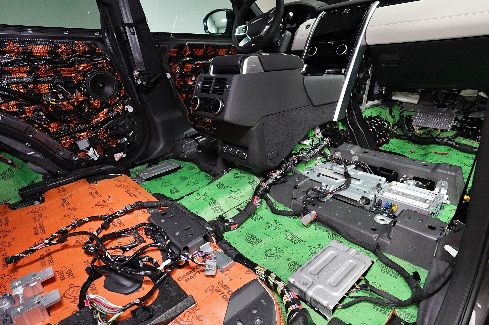 Отутиха на автомобила Land Rover Discovery. При премиум автомобилите често се срещаме с разочаровани собственици, които очакваха достатъчна фабрична звукова изолация. Реалността обаче е различна и въпреки високия комфорт и техническите удобства, Land Rover Discovery страда от значителен шум от гумите, окачването, двигателя или аеродинамичния шум. Производителят на автомобила не е осигурил почти никаква защита срещу вибрации, а звуковата изолация присъства само в рамките на тапицерията на пода. И това много недостатъчно състояние с радост ще отстраним. Тъй като автомобилът е напълно нов и в гаранция, собственикът се обърна към нас и поради нашия опит и качествено свършена работа, която не предизвиква възражения от оторизирания сервиз. Автомобилът на клиента така остава в гаранция и ще бъде значително по-тих, защитен от топлинни загуби и по-удобен като цяло. С взискателния собственик на този автомобил се договорихме за нашия пакет шумоизолация Premium Plus, в който използваме професионални материали от най-високата серия Comfortmat Expert. Насочихме се към всички ключови зони на автомобила, а именно предните, задните и петите врати, пода, багажното отделение, предните и задните арки от вътрешната страна и капака. Резултатът е поне двукратно намаляване на шума в купето, което при магистрална скорост може да надхвърли 4 dB. За инсталацията работеха едновременно четирима наши опитни техници, които успяват да изпълнят и такава взискателна монтажна работа в рамките на един работен ден.