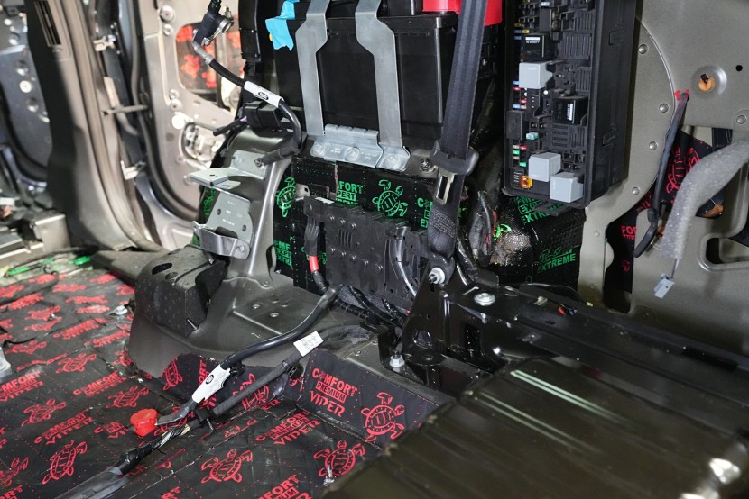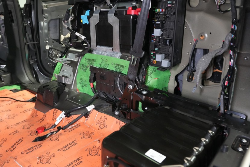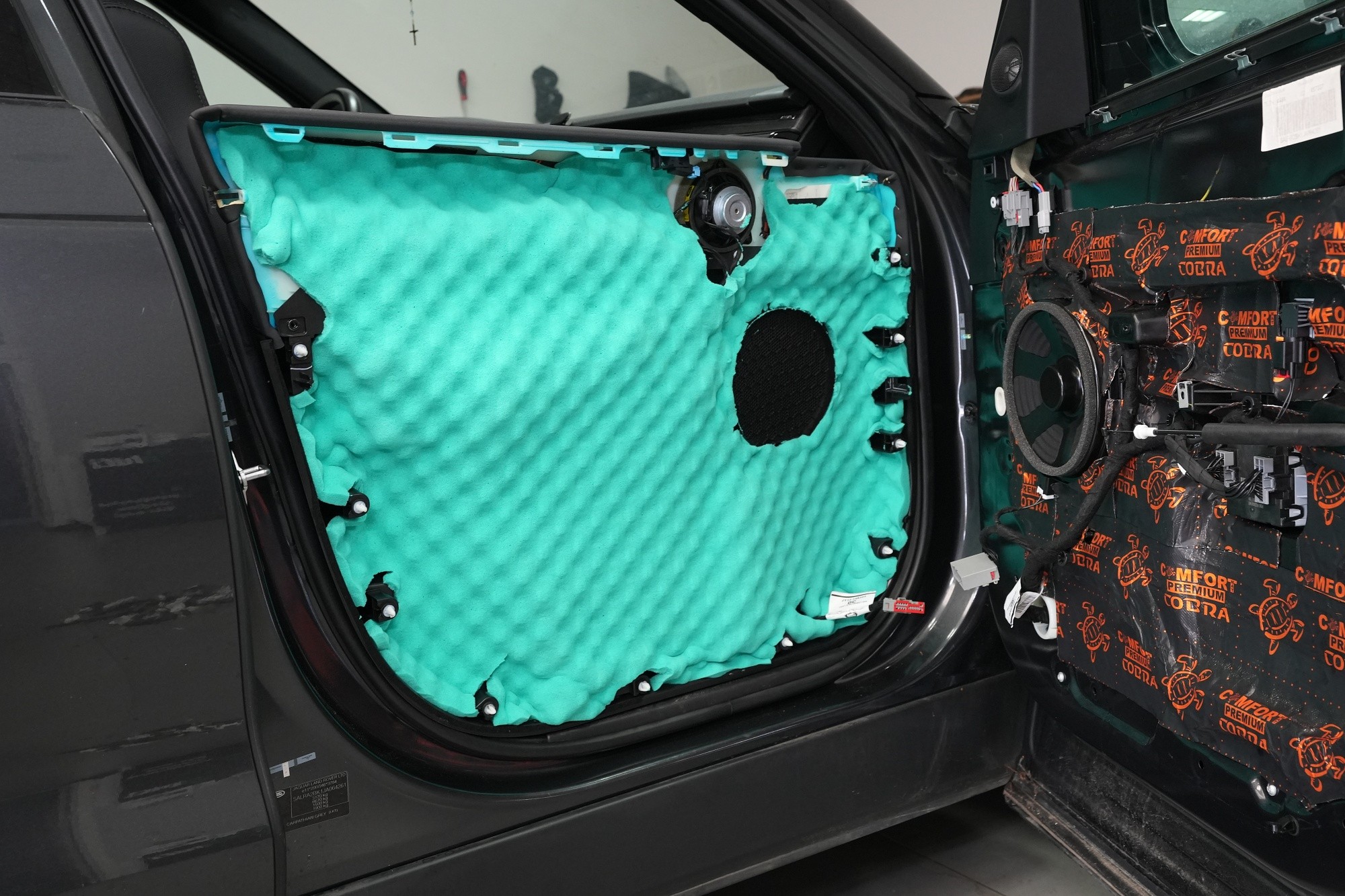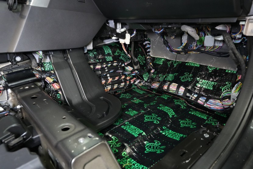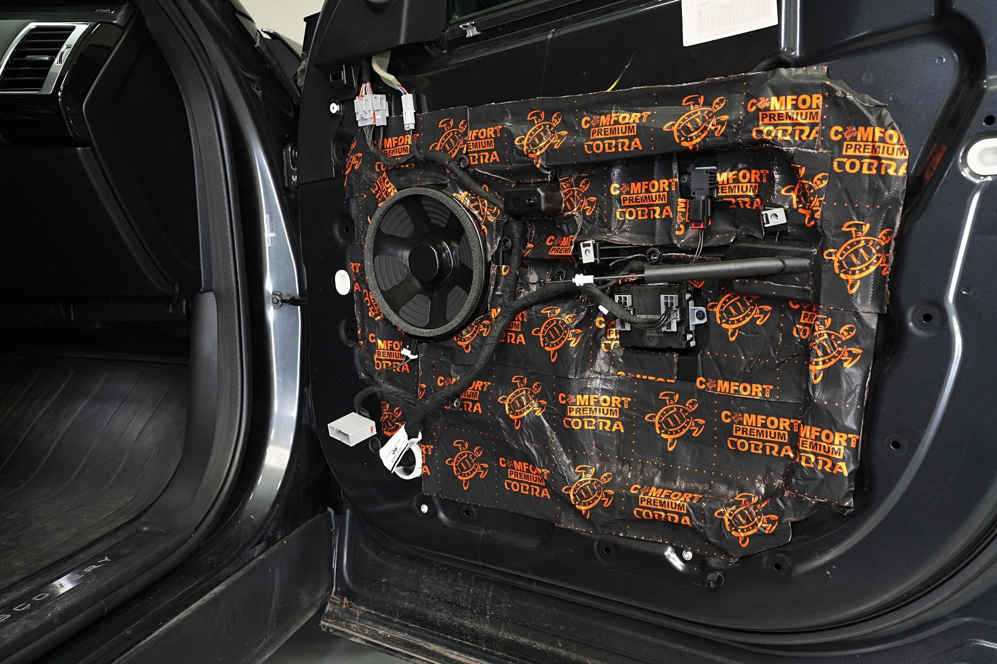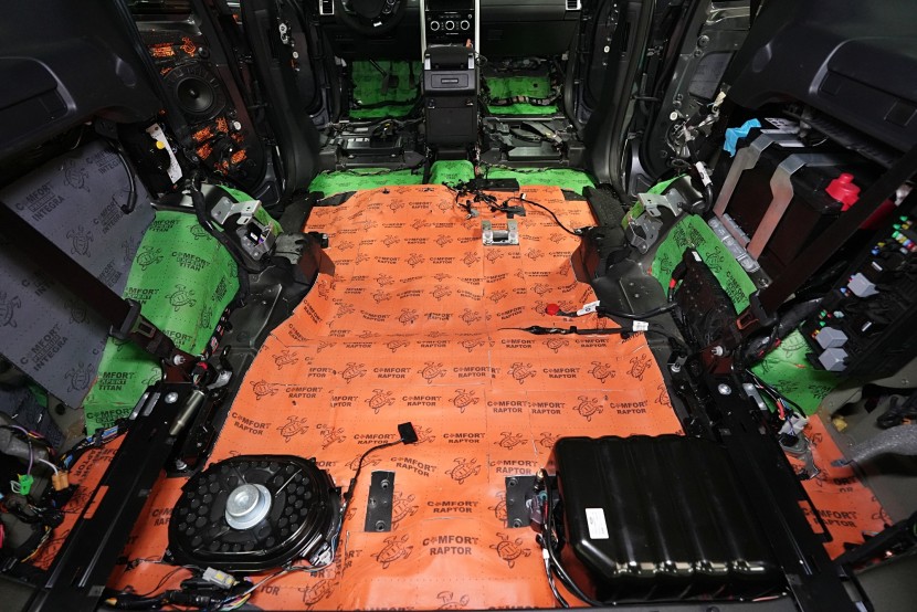 Шумоизолация на автомобила Land Rover Discovery. Дори този премиум модел понякога идва в нашия сервиз и причината, разбира се, не е тайна - недостатъчната фабрична звукова изолация. Discovery, въпреки всички свои качества, не прави изключение и също така страда при увеличаване на скоростта от повишаваща се интензивност на шума в кабината, най-вече от двигателя, скоростната кутия, през пода от настилката и вероятно най-много от големите предни и задни колела. Нашата задача е да превърнем този красавец по отношение на шумоизолацията в качествено съвсем различен автомобил, за да може неговият взискателен собственик най-накрая да се наслади на усещането от този луксозен автомобил. Съгласихме се на нашия пакет шумоизолация Premium Plus, в който използваме професионални материали от най-високата серия Comfortmat Expert. Насочихме се към всички ключови зони на автомобила, а именно предните, задните и петата врата, пода, багажното отделение, предните калници от вътрешната страна, задните калници от вътрешната и външната страна и капака. По инсталацията работиха едновременно четирима наши опитни техници, които успяват да извършат и такава взискателна монтажна работа в рамките на 1 работен ден. Повече интересна информация ще намерите в нашия фоторепортаж.