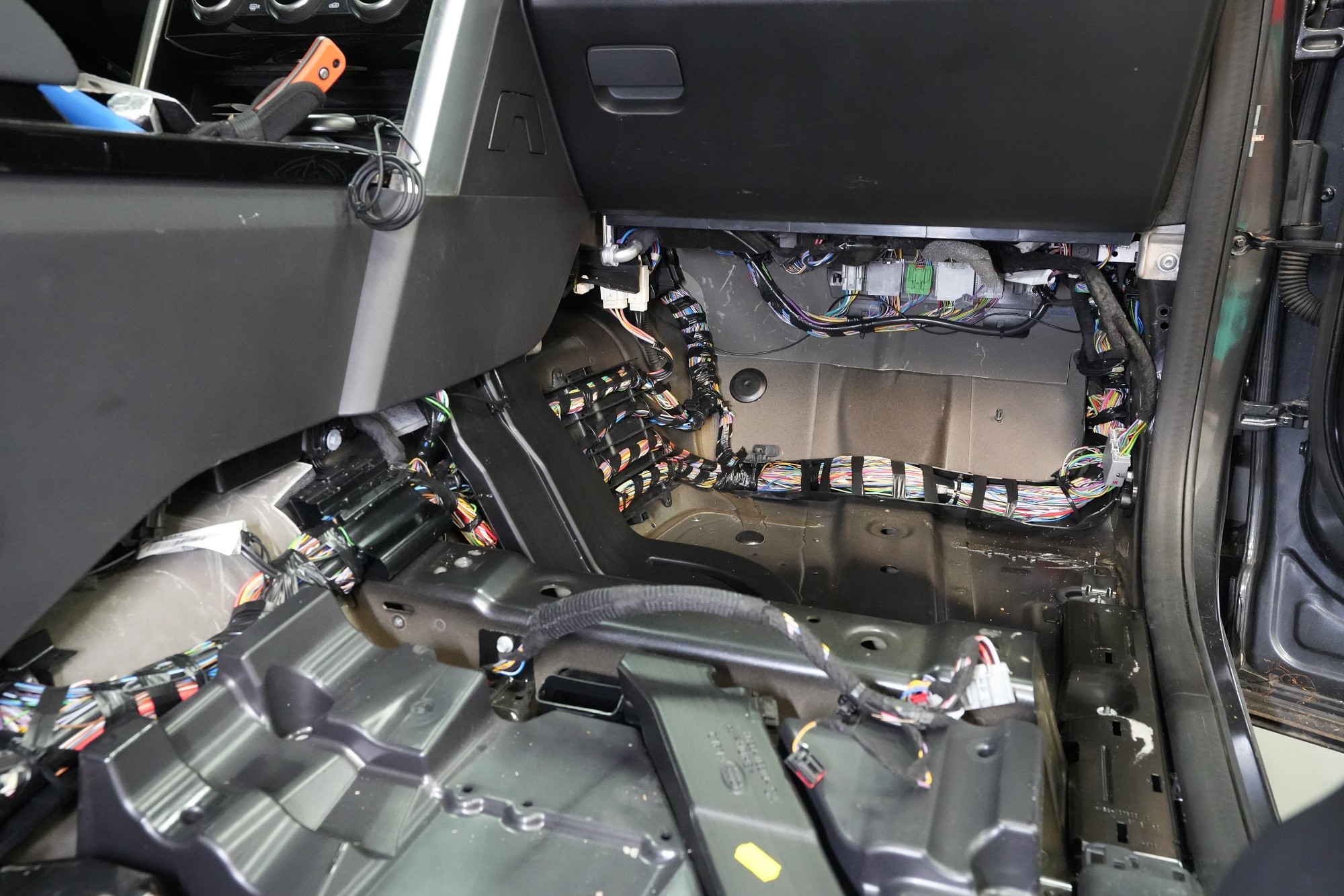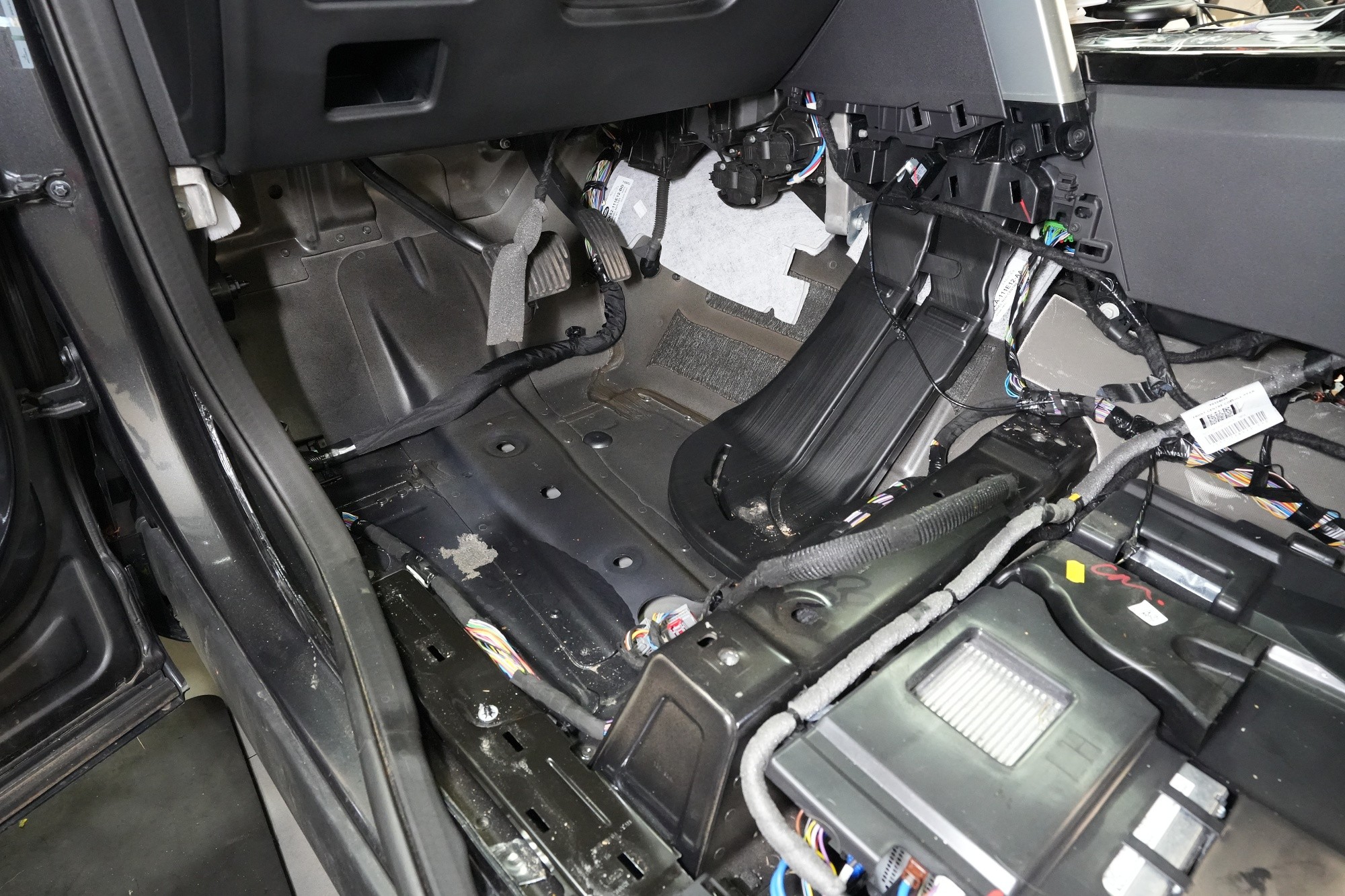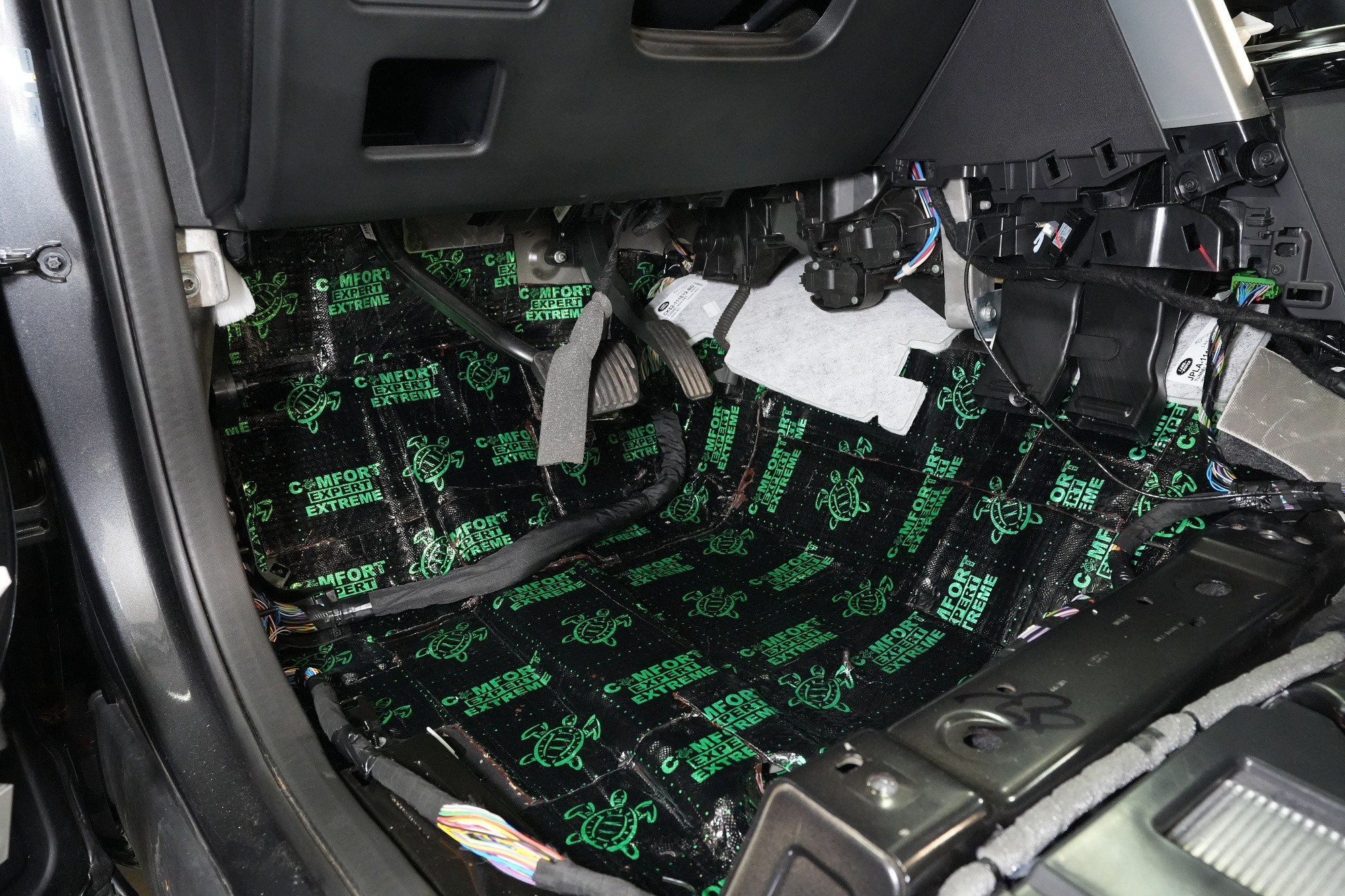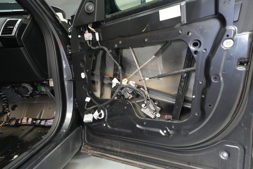 Шумоизолация на автомобила Land Rover Discovery. Дори този премиум модел понякога идва в нашия сервиз и причината, разбира се, не е тайна - недостатъчната фабрична звукова изолация. Discovery, въпреки всички свои качества, не прави изключение и също така страда при увеличаване на скоростта от повишаваща се интензивност на шума в кабината, най-вече от двигателя, скоростната кутия, през пода от настилката и вероятно най-много от големите предни и задни колела. Нашата задача е да превърнем този красавец по отношение на шумоизолацията в качествено съвсем различен автомобил, за да може неговият взискателен собственик най-накрая да се наслади на усещането от този луксозен автомобил. Съгласихме се на нашия пакет шумоизолация Premium Plus, в който използваме професионални материали от най-високата серия Comfortmat Expert. Насочихме се към всички ключови зони на автомобила, а именно предните, задните и петата врата, пода, багажното отделение, предните калници от вътрешната страна, задните калници от вътрешната и външната страна и капака. По инсталацията работиха едновременно четирима наши опитни техници, които успяват да извършат и такава взискателна монтажна работа в рамките на 1 работен ден. Повече интересна информация ще намерите в нашия фоторепортаж.