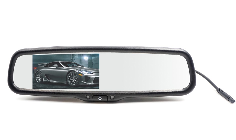 LCD монитор 4,3“ в елегантен дизайн, предназначен да замени оригиналното огледало в автомобила. За закрепване на огледалото е необходимо да се закупи допълнително държач за съответния модел автомобил, в който ще бъде инсталирано огледалото (DS-4.1OEM, DS-4.2OEM, DS-4.3OEM...). К към монитора може да се свърже произволен външен източник на композитен видео сигнал + камери.
