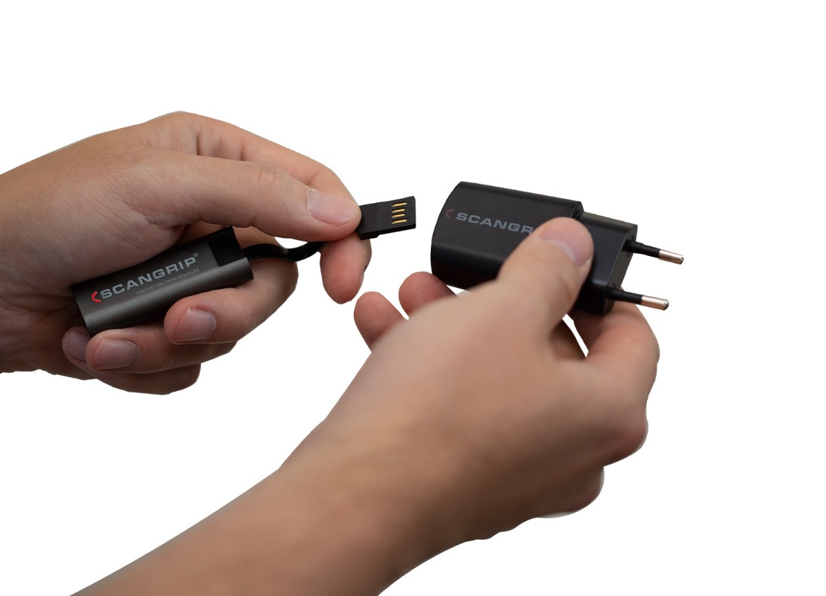 SCANGRIP FLASH MICRO R е много компактен джобен LED фенер с светлинен поток 75 лумена. Интензитетът на светлината може да се регулира в обхвата 10 - 100%. За включване и изключване е необходимо да задържите бутона ON/OFF за две секунди. Вграденият USB кабел осигурява лесно зареждане от компютър и други устройства без необходимост от зарядно.