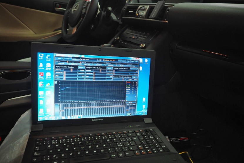 Озвучаване на автомобила Lexus IS 300h. Заводските високоговорители с диаметър 200 mm заменихме с компоненти на германския производител Eton със същия размер. Те са предназначени за автомобили VW, но пасват отлично и за тази Mazda. За максимално използване на потенциала на високоговорителите ги свързахме към петканален усилвател с DSP процесор също от германския производител Match, който благодарение на много малките си размери може лесно да се скрие в арматурното табло. DSP процесорът позволява детайлна настройка на звука, включително честотни раздели, времеви корекции или стръмност. Крайният звук е след настройка чрез софтуер перфектно нагласен за конкретния автомобил.