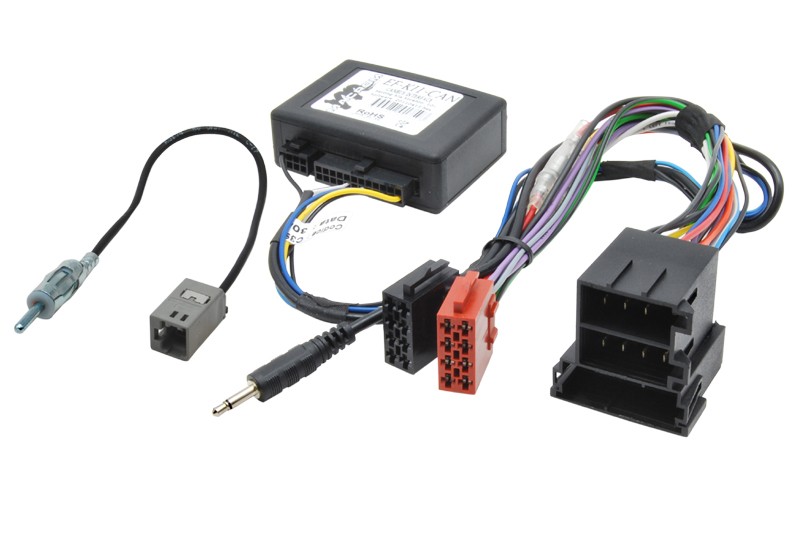 Adaptér pro aktivaci tlačítek ovládání na volantu při koupi aftermarket autorádia s ISO konektorem (je součástí adaptéru) a připojení navigace Macrom M-DVD5561 pro automobily: