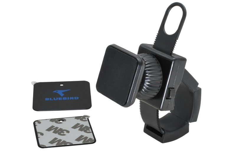 Магнитна стойка за мобилни устройства: смартфони, таблети, преносими навигации за монтаж в автомобили или друго подходящо място. Силен магнит осигурява здраво закрепване на устройството към стойката. Дори при шофиране по неравен терен устройството, закрепено на магнитната стойка Bluebird, няма да падне. Включва две метални пластини 3M за закрепване на мобилни устройства. Металната пластина трябва да бъде залепена на гърба на мобилния телефон или на неговия калъф. Стойката е универсална и съвместима с повечето смартфони на пазара. Магнитната стойка е безопасна за устройството и не причинява никакви смущения при използване.