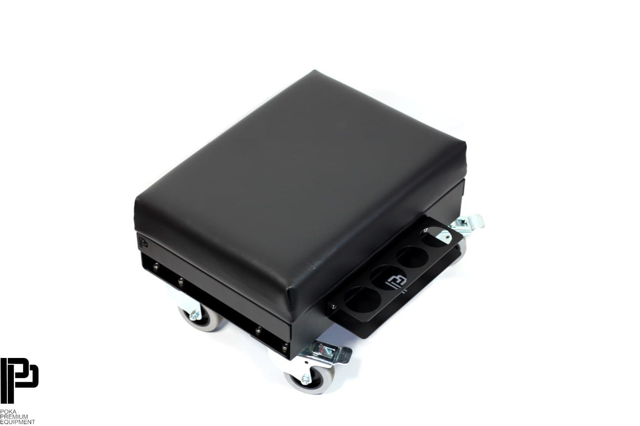 Седалка Poka Premium Detailing Seat/Hassock е изработена от висококачествена стоманена конструкция, покрита със силен цинков слой, който защитава повърхността от корозия. Тя е обработена от двете страни с висококачествена прахова боя с фина текстура, за да не се получават надрасквания и избледняване. Високоеластичната и издръжлива пяна на тапицерията, ламинираната MDF плоскост под нея и здравите винилови колела придават на цялата седалка отлична стабилност и комфорт. Изработката е прецизна благодарение на напреднала CNC технология, без остри ръбове или краища. Седалката има монтажни отвори за допълнителен държач за керамични покрития, който може да се монтира от лявата или дясната страна. Държачът не е част от седалката. Трябва да се закупи отделно!
