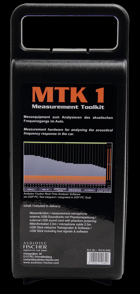 Комплект за измерване RTA. В комплекта е включен специален микрофон (дължина на кабела 2,5 m), USB карта с фантомно захранване и USB кабел.