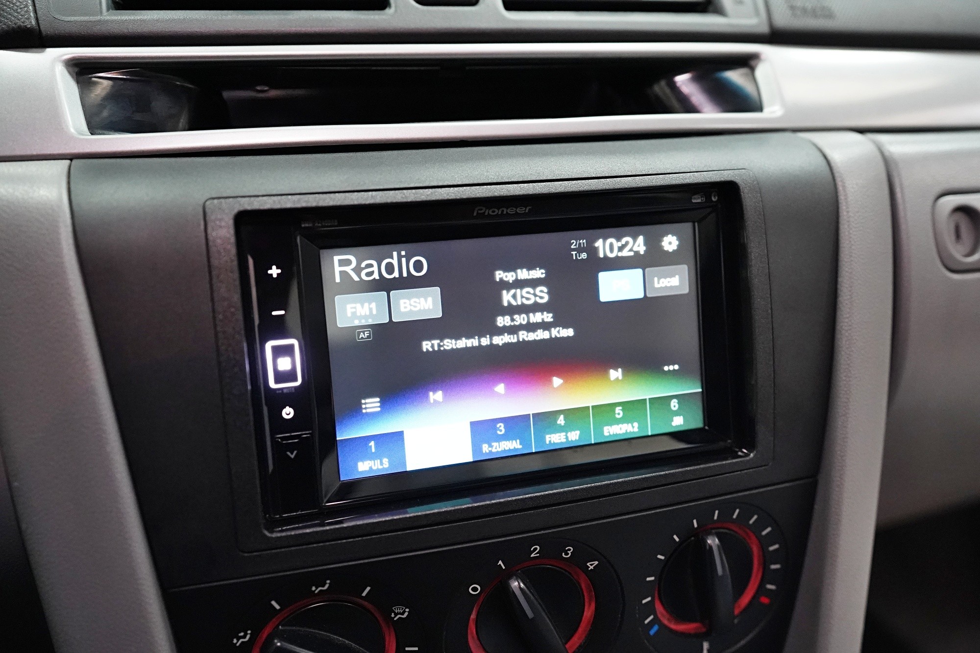 Вид на инсталациятаInstalace 2 DIN autorádia Pioneer