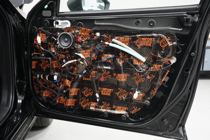 Основна шумоизолация на Mazda 3. Звуковата изолация на последното поколение е леко подобрена в сравнение с предходната, но въпреки това попада сред по-слабите в своя клас и Mazda 3 особено страда от шума от гумите и околния пътни шум. С увеличаване на скоростта този шум бързо нараства и разваля усещането от този иначе много добре направен автомобил. Въпреки че винаги препоръчваме пълна шумоизолация на автомобила, с собственика се договорихме за по-икономичен вариант без шумоизолация на пода. Конкретно се фокусирахме върху предните и задните врати, багажното отделение, задните калници от вътрешната страна и предните калници от външната страна. Всички области шумоизолираме с премиални мембранни материали Comfortmat и монтажът, разбира се, ще бъде извършен в рамките на един работен ден.