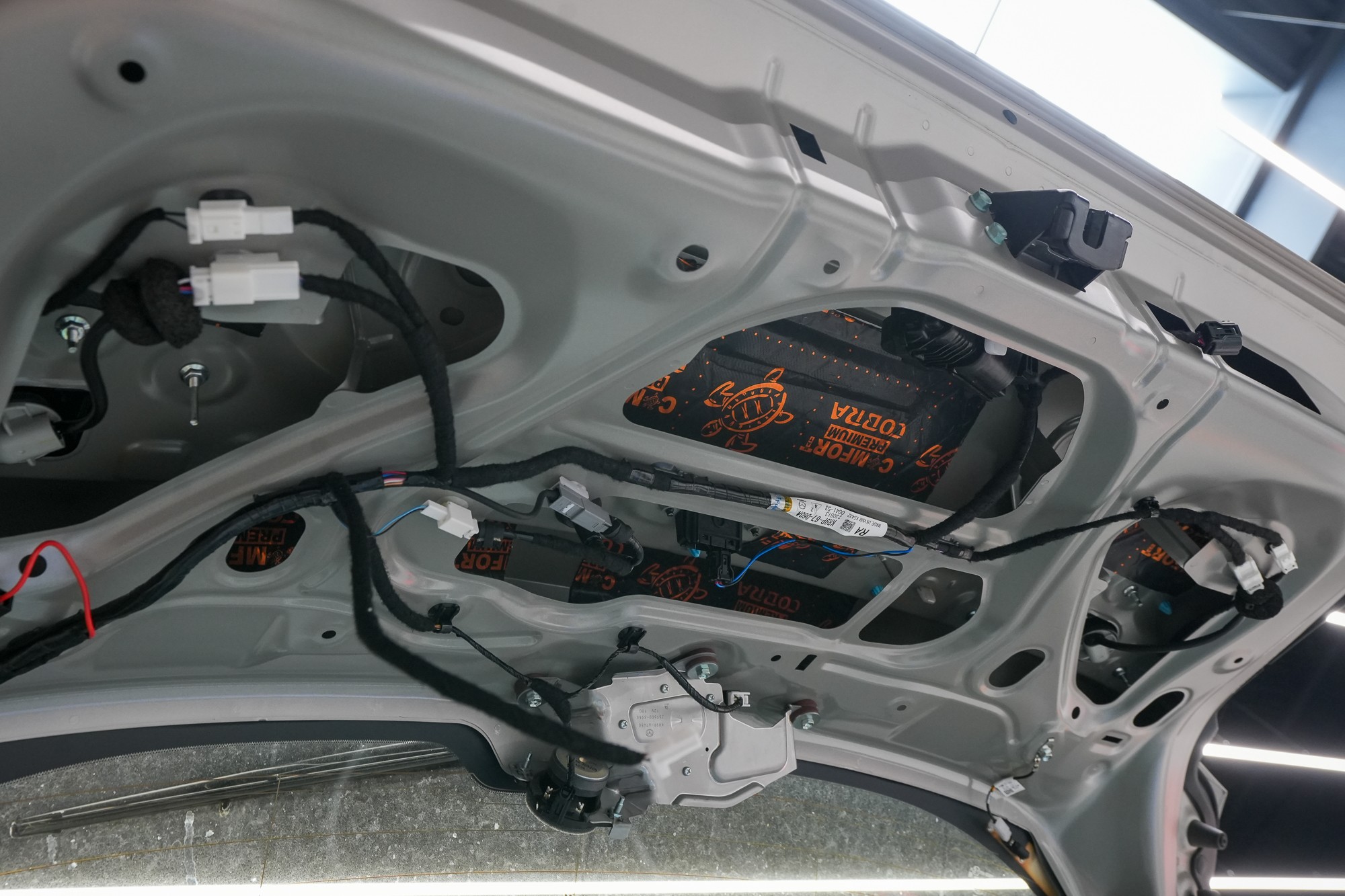 Монтажът бе извършен от нашия четиричленен екип в рамките на един работен ден. Резултатът е значително по-тих интериор, който подчертава премиум характера на автомобила и повишава комфорта, особено при пътувания по магистрала или движение по неравности. Според нашите опити и измервания при подобни автомобили, шумоизолацията Comfortmat във варианта Premium Plus намалява шума в купето с 3,5 до 4 dB, което акустично отговаря на повече от двукратно намаляване на шума в сравнение със серийното състояние. Разликата се усеща още в първите километри — купето изглежда по-тихо, по-спокойно и по-луксозно.