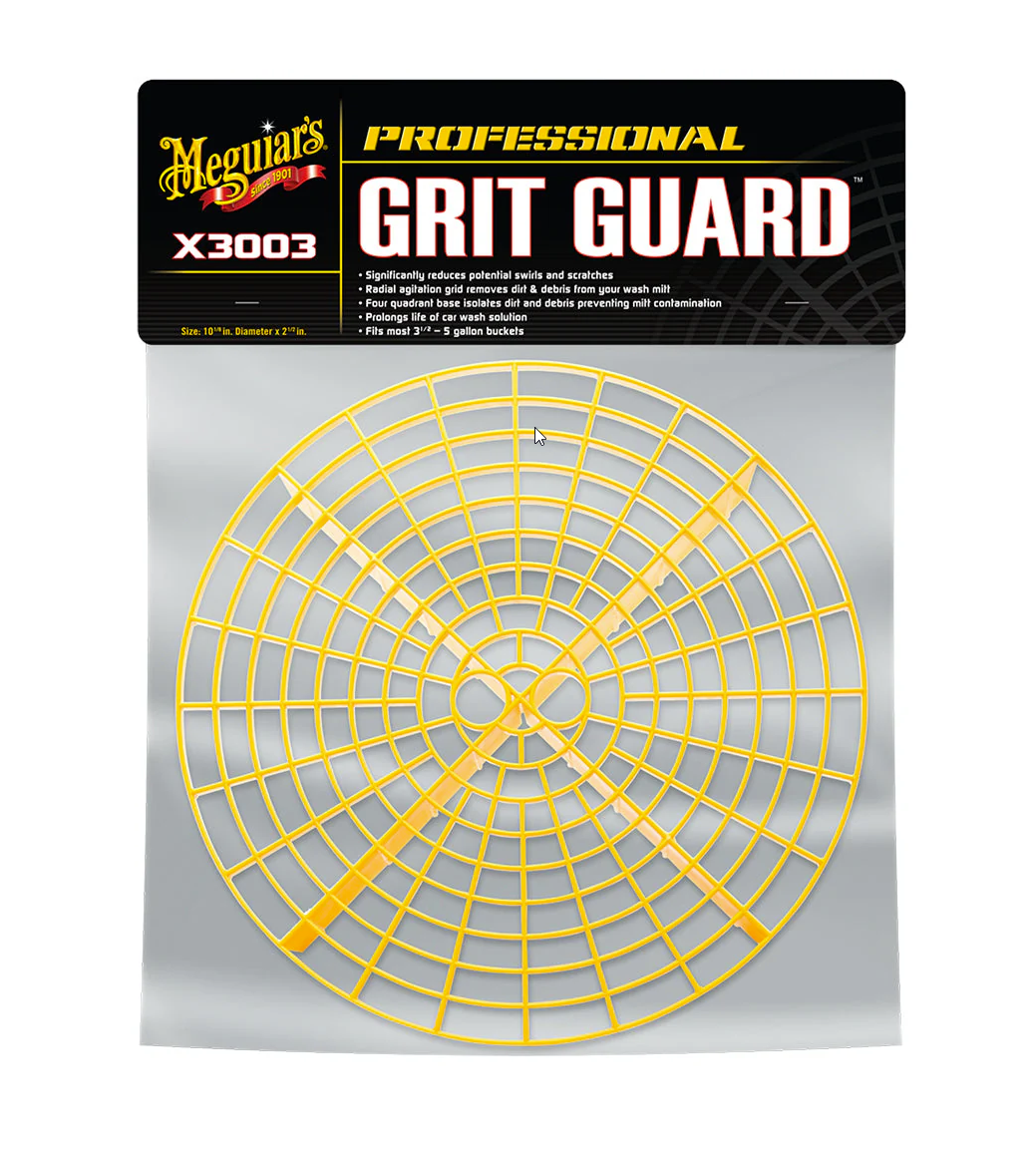 Meguiar’s Professional Grit Guard е интелигентен и ефективен помощник за ръчно измиване на автомобили, създаден да предпазва лака от появата на драскотини, причинени от абразивни частици. Пластмасовата решетка, поставена на дъното на кофата, създава бариера, в която се отлагат замърсяванията, пясъкът и абразивните частици, така че при повторно поставяне на мийната ръкавица или гъбата те да не вземат обратно мръсотията върху повърхността на автомобила. Благодарение на четири-квадрантната конструкция е минимализирана рециркулацията на замърсявания, водата остава по-чиста по-дълго и процесът на миене е значително по-безопасен за лака. Вложката е с размери, които пасват на повечето стандартни кофи с обем приблизително 13 до 20 l — идеален избор за ентусиасти и професионалисти, които искат да защитят лака при всяко измиване.
