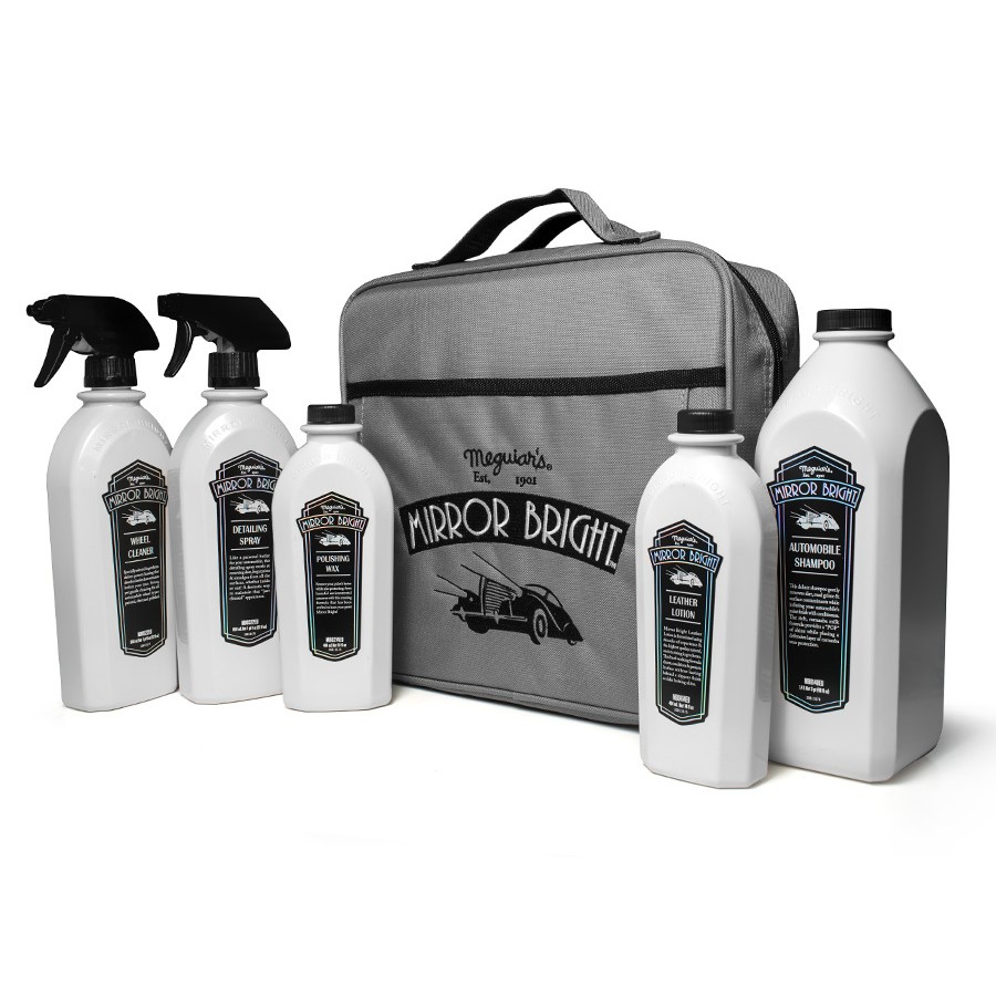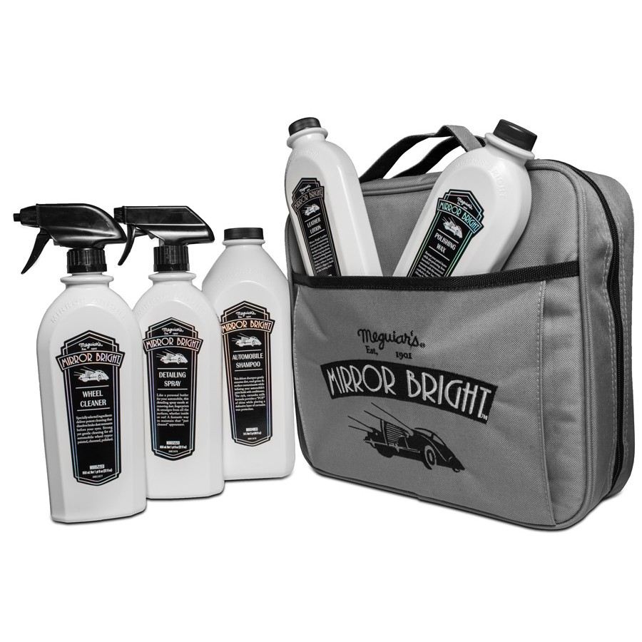 Пълен и ценово изгоден комплект от цялата серия Meguiar's Mirror Bright с луксозна чанта във винтидж дизайн. Съдържа всички продукти на Meguiar's от серията Mirror Bright и брандирана чанта за лесно съхранение и пренасяне. Така комплектът може да ви бъде винаги под ръка.Комплектът съдържа: