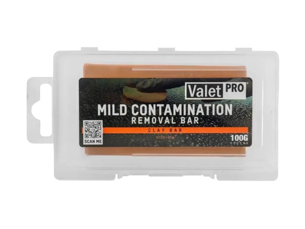 Contamination Remover Bar е clay (почистваща глина). ValetPRO предлага три вида clay и всички те по същество вършат една и съща работа. Те премахват прикрепените замърсявания от лакираната повърхност, които не могат да бъдат отстранени с обикновено измиване — асфалтени петна, натрупвания от пътна мръсотия, сок от дървета, изпражнения и т.н. Ако след измиване каросерията е грапава на допир, опитайте да използвате clay и ще усетите разликата. Просто плъзгайте clay по повърхността на каросерията — към него ще се прикрепят прилепналите замърсявания и така те внимателно ще бъдат отстранени от лака.