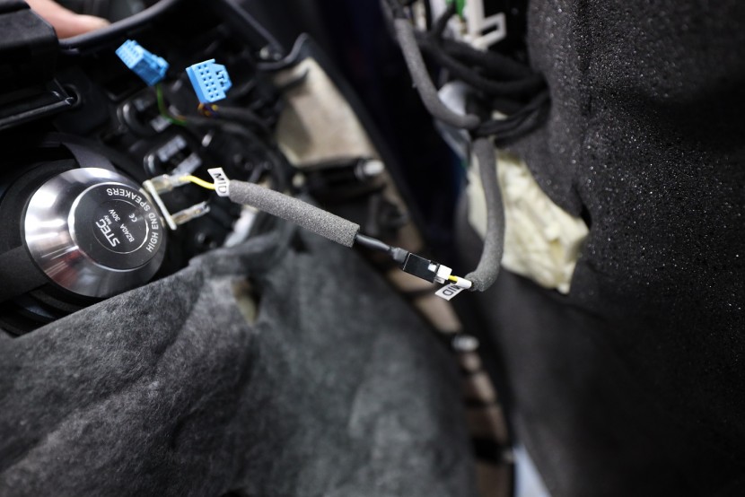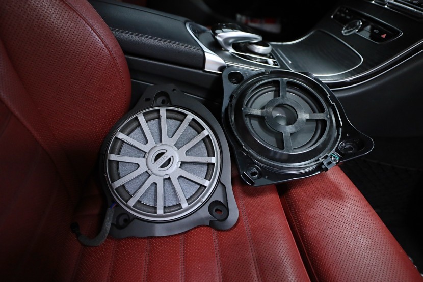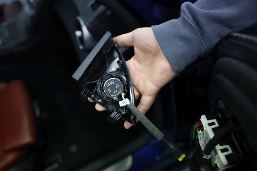 Монтаж на висококласно озвучаване Steg включително усилвател с DSP процесор Audison в автомобил Mercedes-Benz от клас C. Този автомобил беше оборудван само с базово озвучаване, което звуково е много под средното ниво. В Mercedes очевидно следват примера на BMW и базовото озвучаване също липсва от високочестотни говорители, което оказва значително влияние върху крайния звук. За ъпгрейд избрахме много качествени звукови високоговорители от италианския производител Steg, които имат същата форма, монтаж и конектори като фабричните високоговорители. Следователно не е необходимо нищо да се пробива, завива или запоява и разбира се използваме и оригиналната окабеляване. Инсталацията е в духа на Plug & Play и без намеса в оригиналната окабеляване или дизайна на интериора. Оригиналната аудио система съдържаше широколентови високоговорители без високочестотни говорители в предните и задните врати и един субуфер от страната на пътника. След смяната автомобилът разполагаше със средночестотни високоговорители в предните врати, високочестотни говорители в A-колоната, коаксиални високоговорители с интегрирани високочестоти в задните врати и субуфери както от страната на водача, така и от страната на пътника. За максимално използване на всички високоговорители и субуфери инсталирахме висококласен осемканален дигитален усилвател Audison с DSP процесор, благодарение на който е възможно да настроим звука до максимум. На усилвателя, скрит в багажното пространство, настроихме филтрите, стръмност, фаза, времеви корекции и детайлен еквалайзер. Резултатът е перфектен звук, нагласен точно за този автомобил, който значително превъзхожда както звуково, така и по мощност доплащаемото озвучаване Burmester. Същото озвучаване може с малки изключения да бъде инсталирано във всички съвременни автомобили Mercedes-Benz, за които високоговорителите на реномирания италиански производител Steg са директно предназначени. За леко звукоизолиране на вратите и предотвратяване на нежелани вибрации приложихме шумоизолиращ материал Silent Coat.