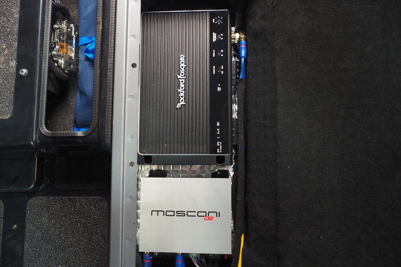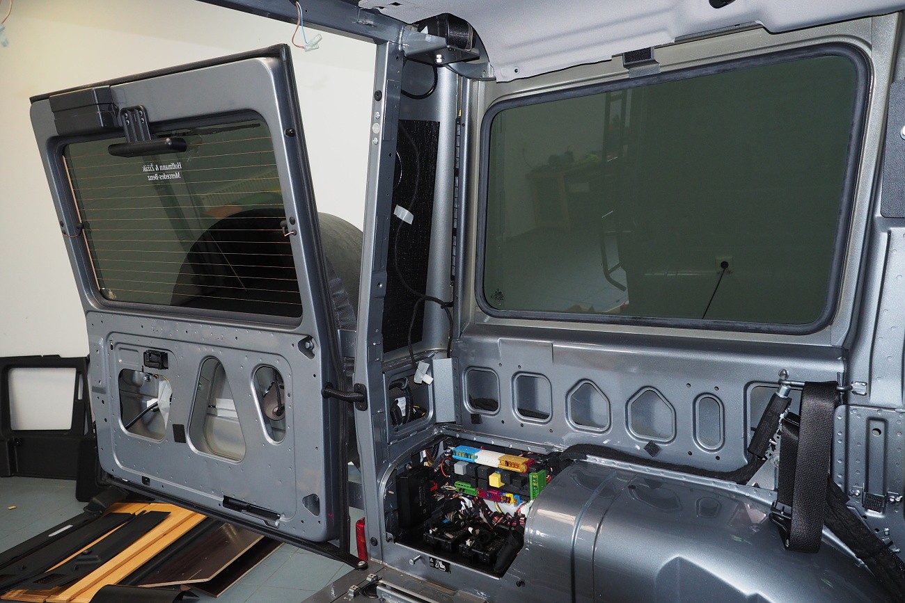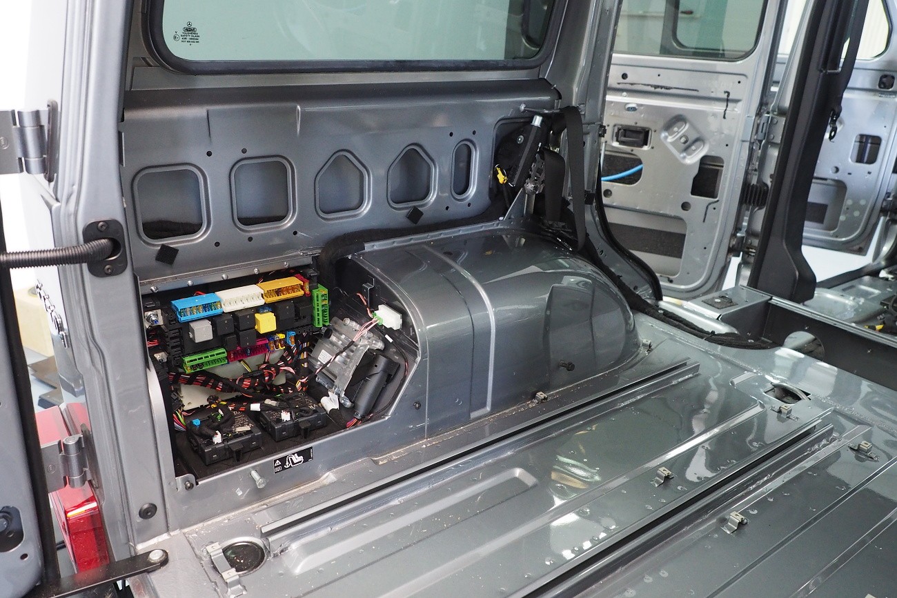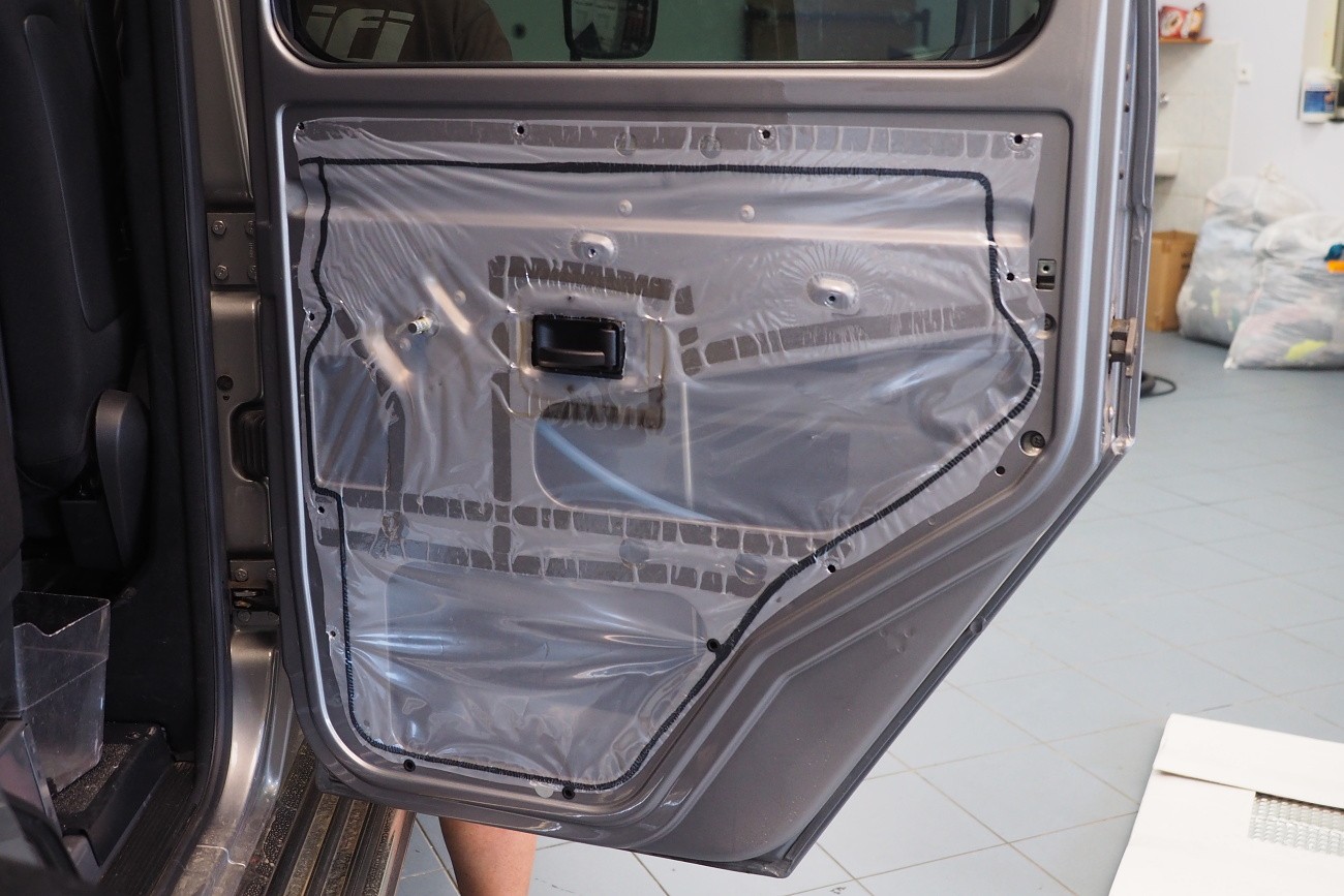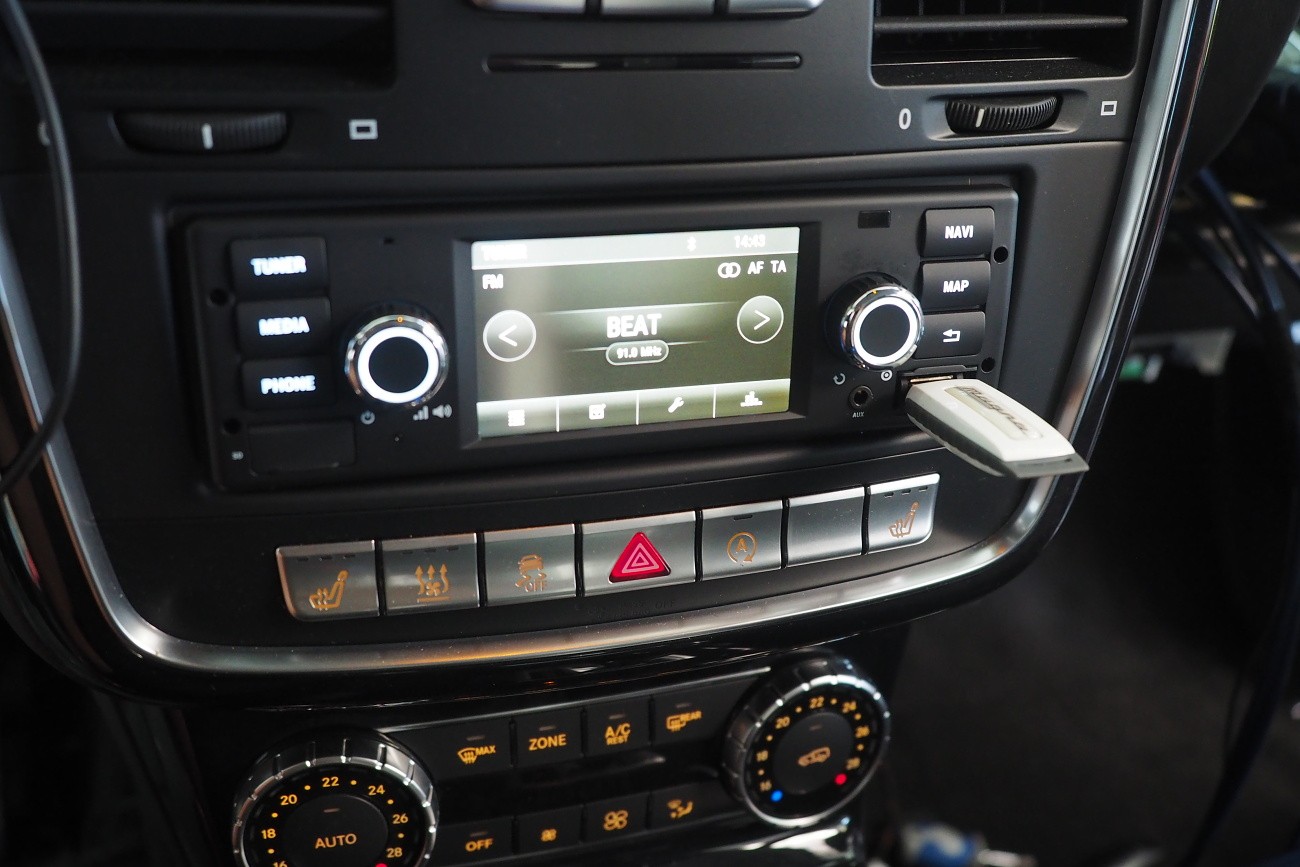 Много трудоемък монтаж на автомобил Mercedes-Benz G-Class, за който прекарахме общо 48 часа. Този автомобил, подобно на например Land Rover Defender, от завода няма никаква звукоизолация. Затова обезшумихме целия автомобил: всички врати, целия багажен/заден обем, пода, тавана и вътрешните арки. Дойде ред и на озвучаването. Инсталирахме звуково усъвършенствани говорители Rockford Fosgate от серията Power, които свързахме към първокласен усилвател Mosconi с DSP процесор. За басовата част отговаря нов субуфер на марката Kicker, който се захранва от моноблок Rockford Fosgate.