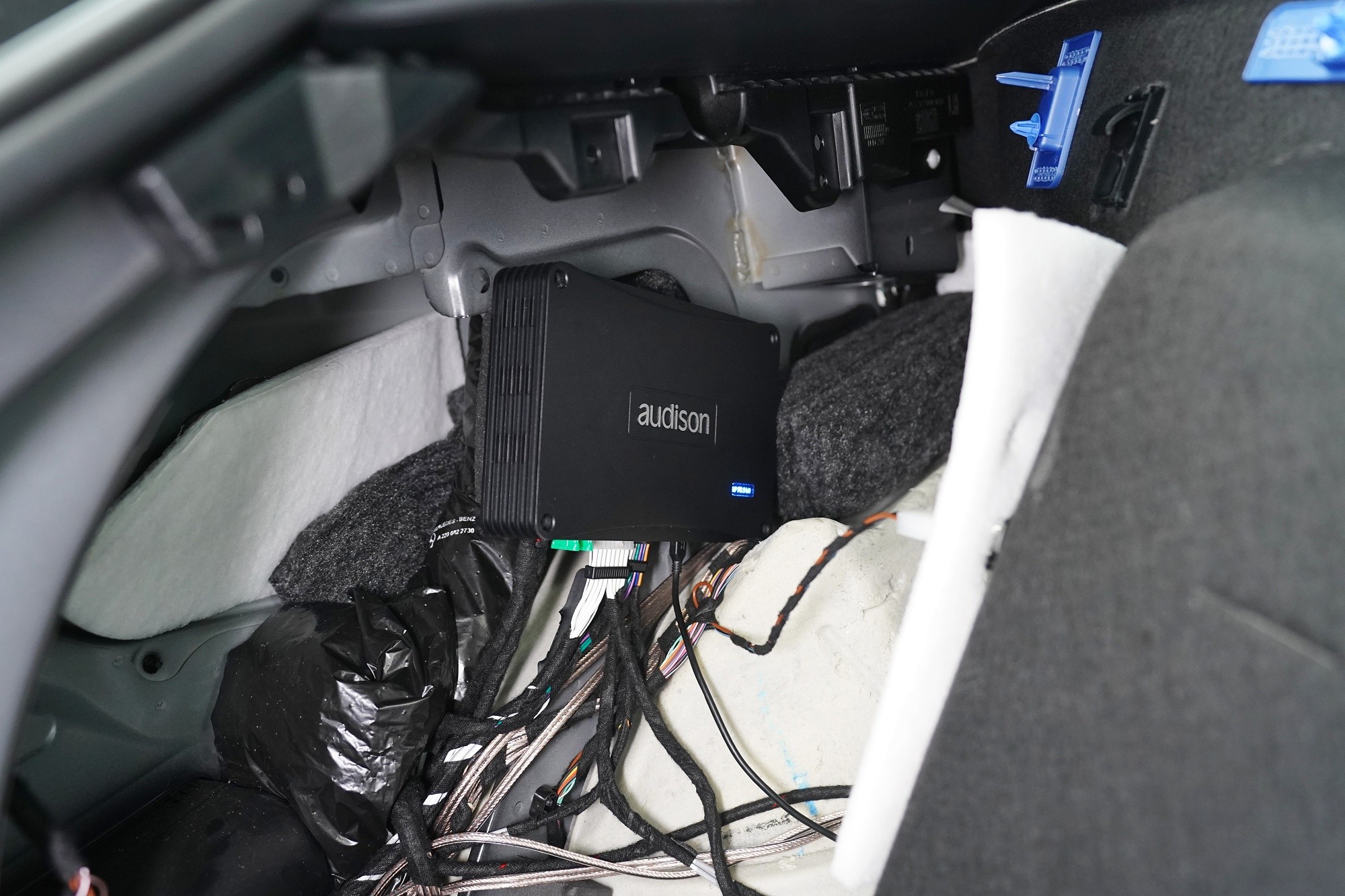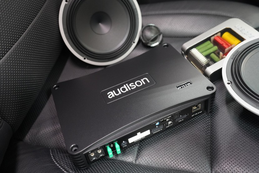Вид на инсталациятаInstalace reproduktorů, subwooferu a zesilovače s DSP procesorem
