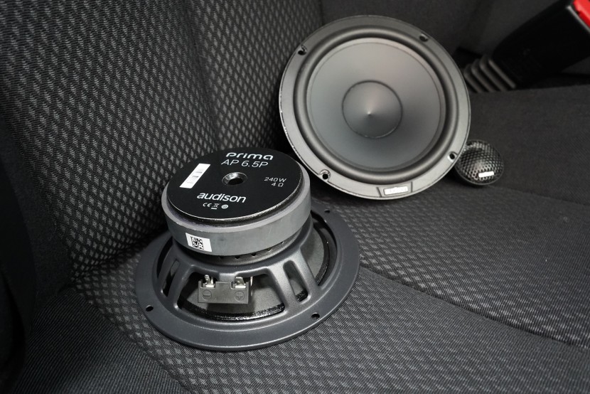 Вид на инсталациятаInstalace autorádia, reproduktorů, zesilovače a subwooferu