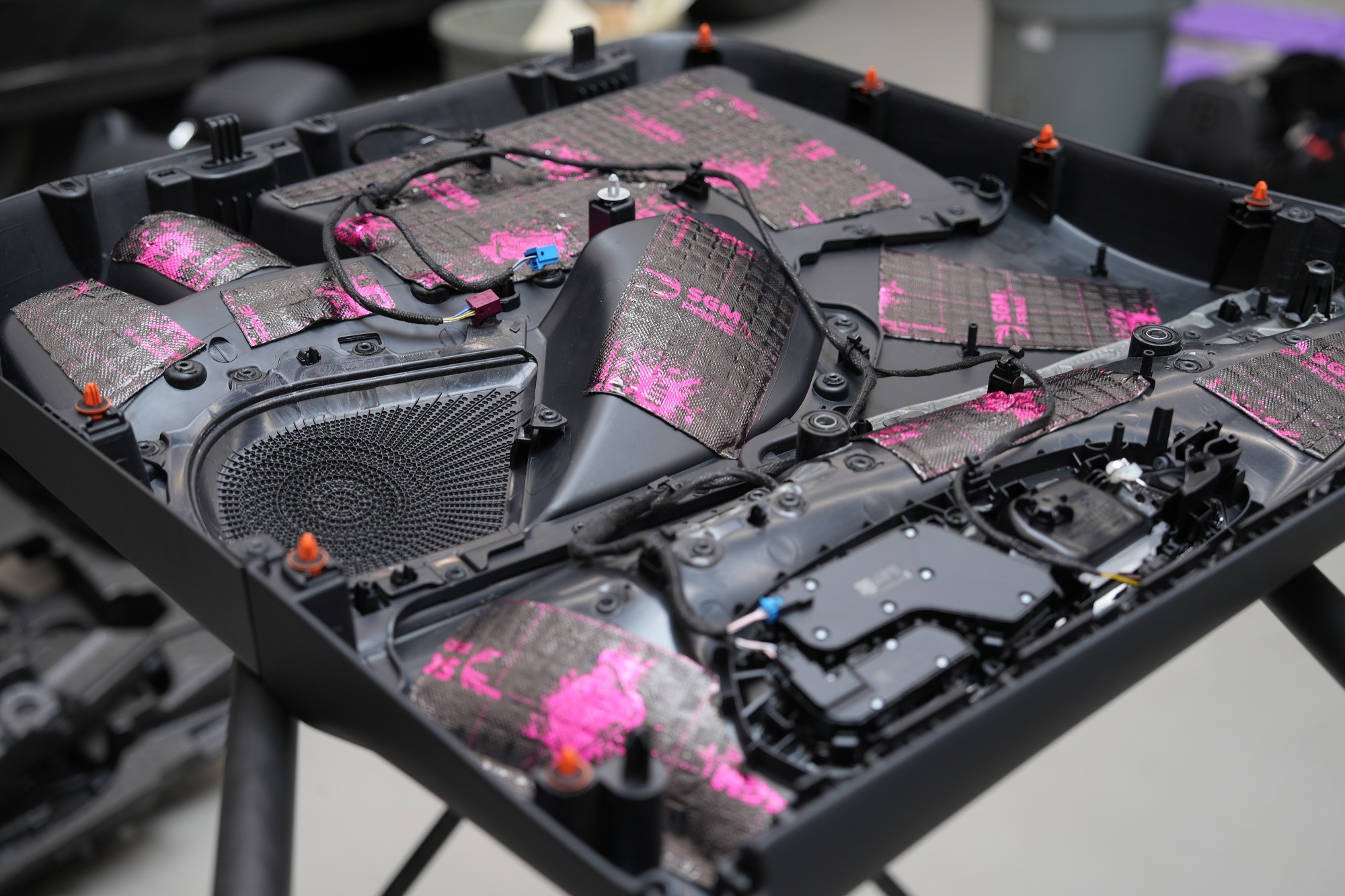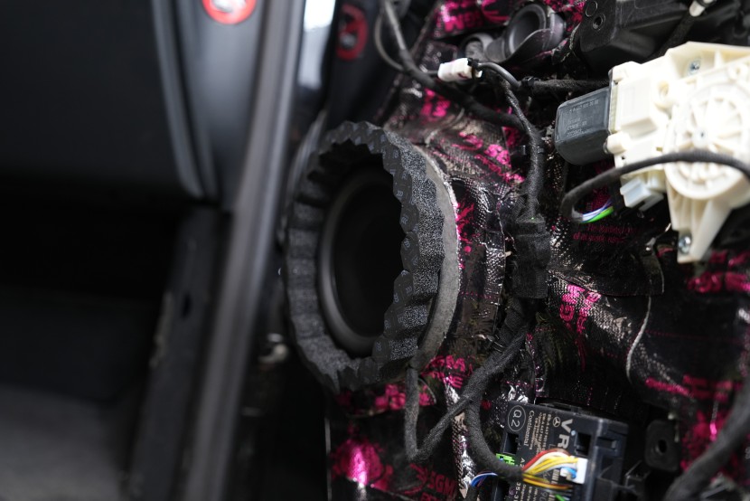 Вид на инсталациятаVýměna továrních reproduktorů systému Burmester