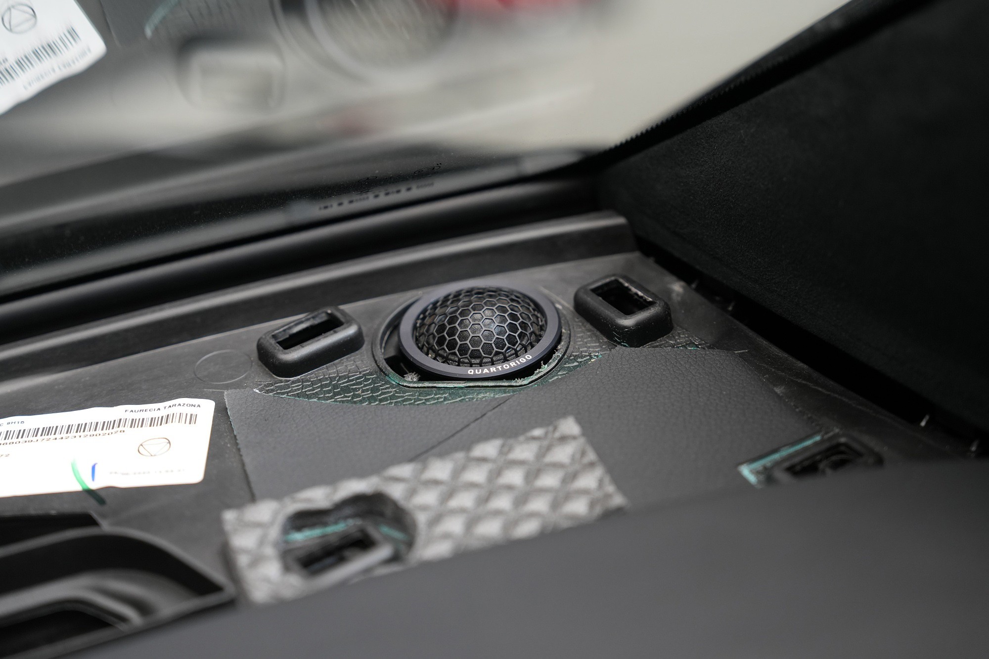Смяна на говорителите в автомобил Mercedes-Benz V-Class със заводска аудио система Burmester. Собственикът не беше доволен от това и пожела достъпен ъпгрейд, който да издигне серийното озвучаване на по-високо ниво. Понякога за това е достатъчно много малко и тази инсталация е пример за това. Тайният ключ е правилният избор на говорители. За този V‑Class избрахме компонентна система Rhapsodis от италианския high-end производител Quartorigo, която представлява най-качественото звуково решение от нашата оферта за свързване към заводски радиа или усилватели. Въпреки че това е една от по-ниските моделни серии, говорителите предлагат типично вярно звучене за този производител, много приятна тоналност и като бонус висока реална чувствителност. Благодарение на това тези усъвършенствани говорители могат да се използват с мощностно скромния заводски усилвател Burmester, който им доставя подходящо захранване. Разбира се при условие, че сте готови да инвестирате по-голяма сума само в смяна на говорителите. Наградата ще бъде звук, който наистина е удоволствие да се слуша. Освен това с възможност да издигнете това озвучение в бъдеще на следващо ниво чрез добавяне на DSP процесор. Любопитна подробност в наши дни е международно признатата сертификация 100% Made in Italy. Тя гарантира, че всяка част от тези говорители е произведена и сглобена в Италия, което личи не само в обработката, но и най-вече в качеството на звука. Саморазбиращо се беше щателното шумоизолиране не само на вратите, но и на целия автомобил, за да могат тези висококачествени говорители да предоставят на слушателя съответния звуков капацитет. Препоръчваме този ъпгрейд на всеки, който жадува за качествен звук, но не иска да инвестира в по-сложна инсталация на изцяло нов аудио система. Quartorigo Rhapsodis изпълнява това изискване с лекота и осигурява извънредно звуково изживяване.