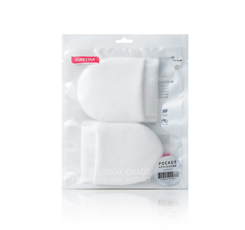 Purestar Pocket Applicator е висококачествен микрофибърен апликатор с вграден джоб за пръстите, който позволява лесна и ефективна работа. Южнокорейските влакна със затворена бримка осигуряват максимална нежност към всички повърхности и дълготрайна издръжливост без изпадане на влакна. Вътре има плътна пяна, която ненужно не абсорбира и не задържа течни препарати. Апликаторът може да бъде използван за нанасяне на сиалант върху кожа, препарат за пластмаси, нанасяне на glaze, восък, но също и за ръчно полиране и подготовка на лака преди восъченето. Разбира се, "магическият" състав на микровлакната Purestar е в съотношение 70% полиестер и 30% полиамид.