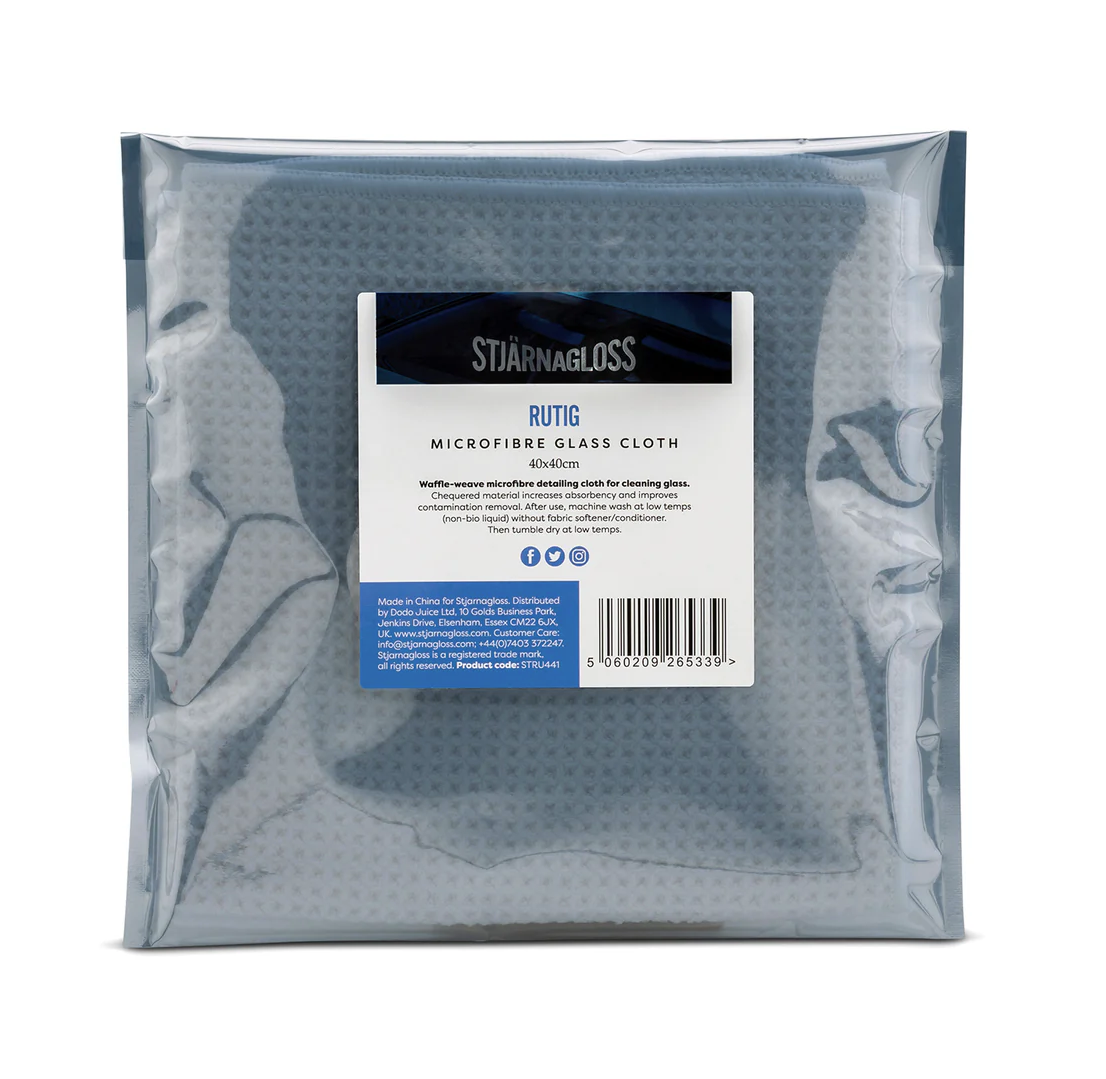 Stjärnagloss Rutig е микрофибърна вафлена кърпа с висока абсорбционна способност, предназначена специално за стъкла. Никога не оставя ивици и поддържа стъклата приятно чисти. Размерите на кърпата са 40 x 40 cm. В нашата статия "Как да се грижите за предното стъкло" ще научите всичко за почистването на прозорци и стъкла.Основни характеристики