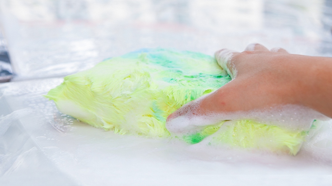 - Перете гъбата в перална машина със специален препарат за пране за микрофибърни кърпи.