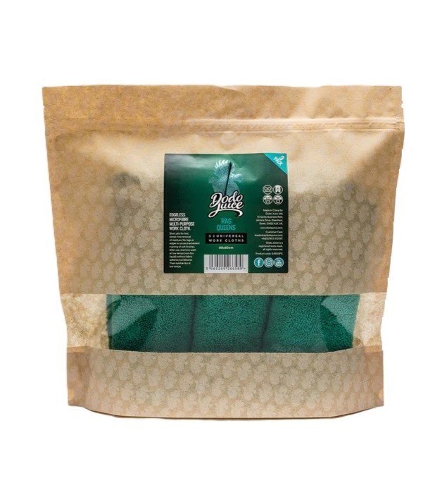 Това ли е полирна кърпа? Това ли е почистваща кърпа? За блясък ли е? Rag Queen е това, което искате - универсална и икономична микрофибърна кърпа, която е мека, с късо влакно и е идеална за отстраняване на упорити остатъци от полир паста или восък. Всъщност е перфектна за полиране или почистване - вътре или извън автомобила. Тази кърпа с размери 40 x 40 см е изработена от микрофибър с плътност 380 г/м² и е не само без краища, за да се намали рискът от повреда на лака, но и без етикети. Разбира се, можете да се сдобиете с по-меките Dodo Juice Royal Plush или Dodo Juice Fantastic Fur, но в повечето случаи това просто не е необходимо. Всъщност, поне за половината от вашите детайлинг задачи НЕ ИСКАТЕ да използвате по-мека или по-нежна кърпа. Почистване на интериори, джанти, тапицерия, вътрешни повърхности, изпускателна тръба ... нищо от това не изисква фина микрофибърна кърпа. Rag Queen предлага добро съотношение цена/качество за премиум кърпа без краища в размер 40 x 40 см.Основни характеристики