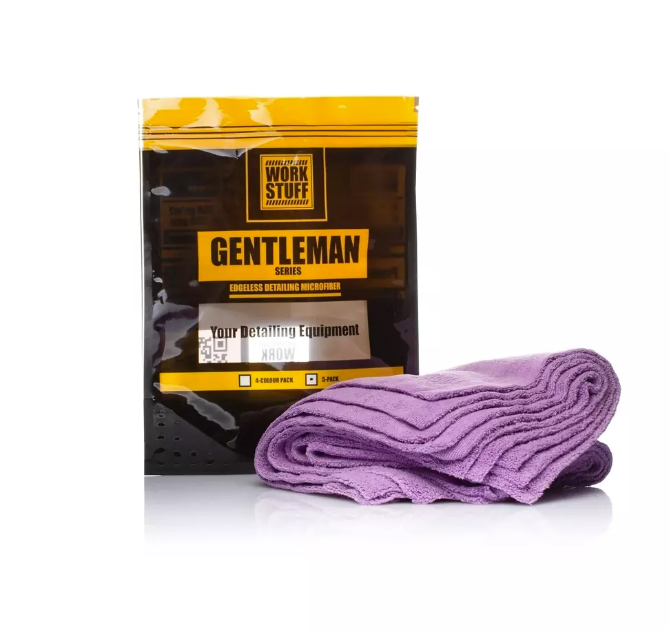 Представяме ви микрофибърните кърпи Work Stuff Gentleman Basic, които са идеални за ефективно и лесно почистване на интериора и екстериора на автомобили. Подходящи са за редица задачи - от полиранe на восък или керамична защита до използване с бърз детайлер. Work Stuff Gentleman Basic се отличават с размер 40 x 40 cm и грамаж 350 g/m². С плосък материал от едната страна и пухкаво микрофибърно покритие от другата, тази кърпа осигурява щателно почистване на всички повърхности. Налични са в четири цвята: лилави, бели, жълти и сиви.Основни характеристики