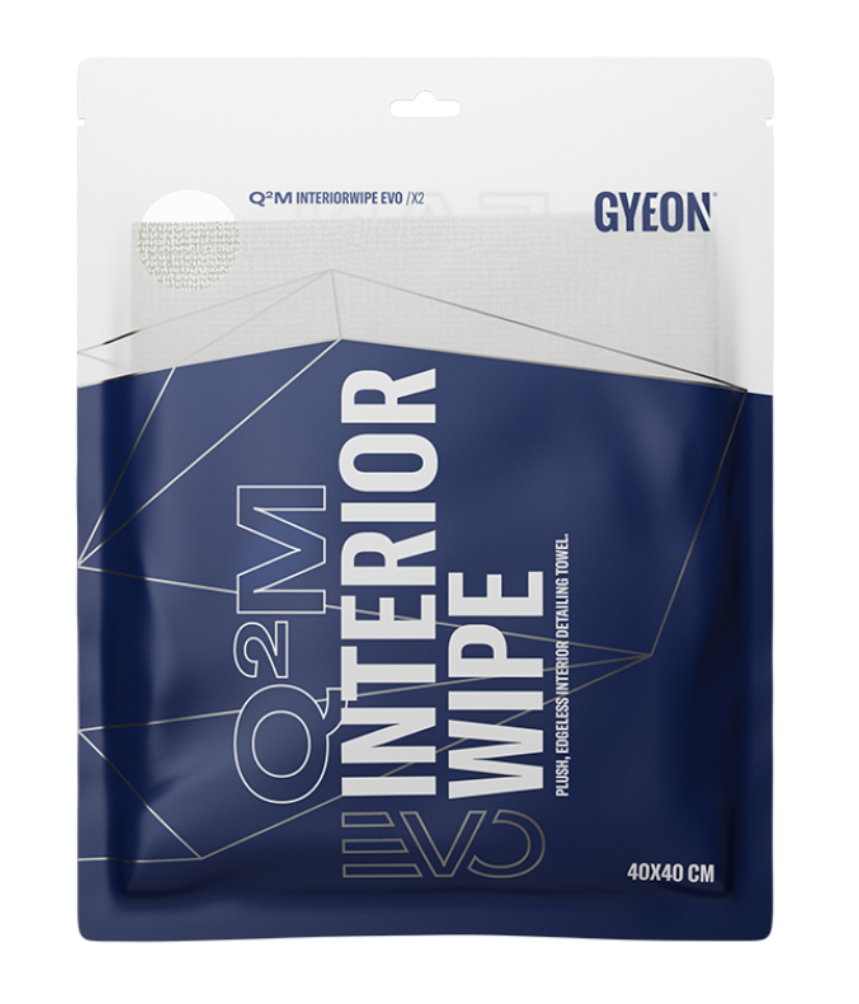 Gyeon Q²M InteriorWipe EVO е перфектен избор за почистване на всички видове облицовки и повърхности в интериора. Плюшената, двустранна микрофибърна кърпа е високо попиваща и ефективно премахва прах, всякакви видове замърсявания или остатъци от почистващи препарати. С новото ултразвуково рязане ръбовете са още по-гладки от преди. Продуктите от микрофибър се използват при миене, деконтаминация, сушене, полиране, при работа с керамични покрития и поддръжка на всеки отделен елемент от автомобила. Те могат да ускорят и направят по-ефективна всяка задача или в крайна сметка да разрушат крайния резултат. Затова Gyeon предлага едни от най-добрите микрофибърни продукти за автомобилната индустрия.